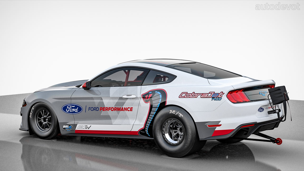 It’s a one-off prototype that is estimated to deliver over 1,400 hp and over 1,100 lb-ft (1,490+ Nm) of instant torque. Ford Performance will continue to test the Cobra Jet 1400 until its world debut later this year at a drag racing event where fans, media and competitors alike will get to meet the race car and see its capabilities.