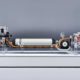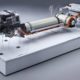 The electric converter located underneath the fuel cell adapts the voltage level to that of both the electric motor and the peak power battery — which is fed by brake energy as well as the energy from the fuel cell.