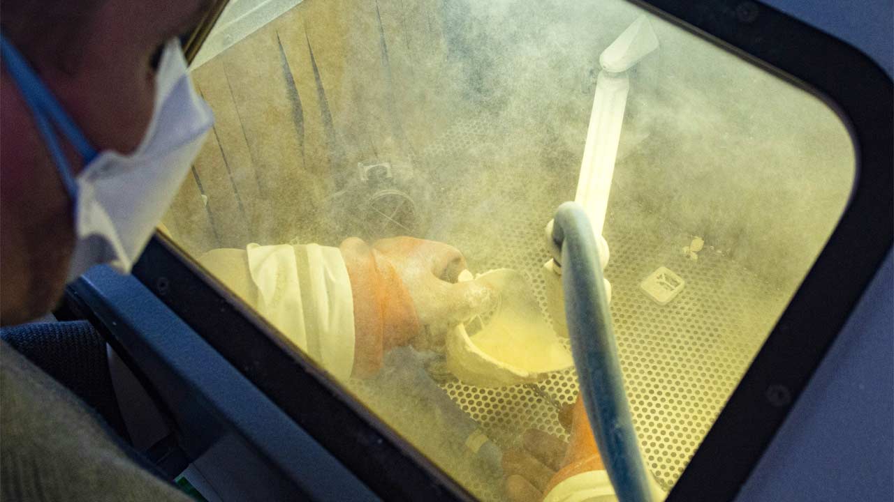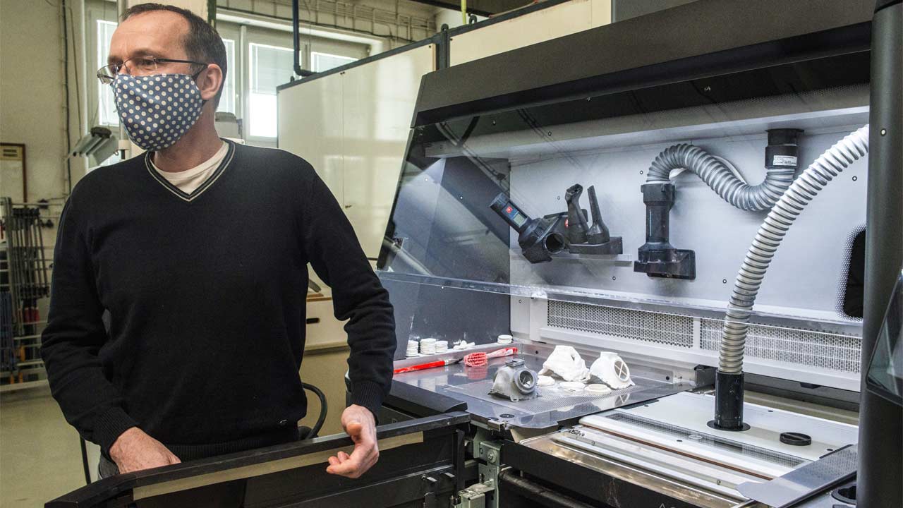 The Czech Technical University opted for Multi Jet Fusion using the polyamide PA-12. This printing method ensures you get a homogeneous material that does not have distinct layers and is not porous. That is the key, because it means the traces of the virus do not remain in it and it’s easy to disinfect. – David Vaněk