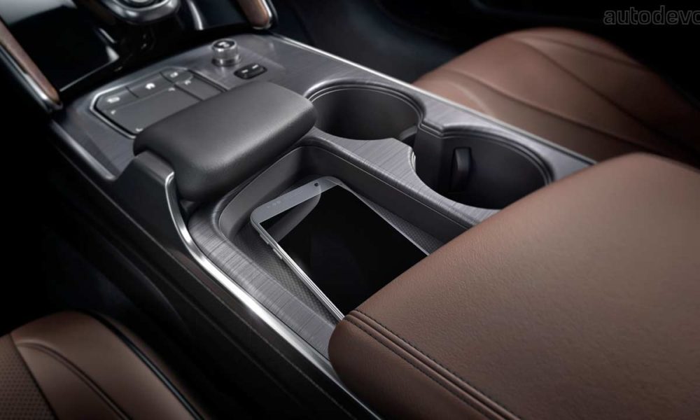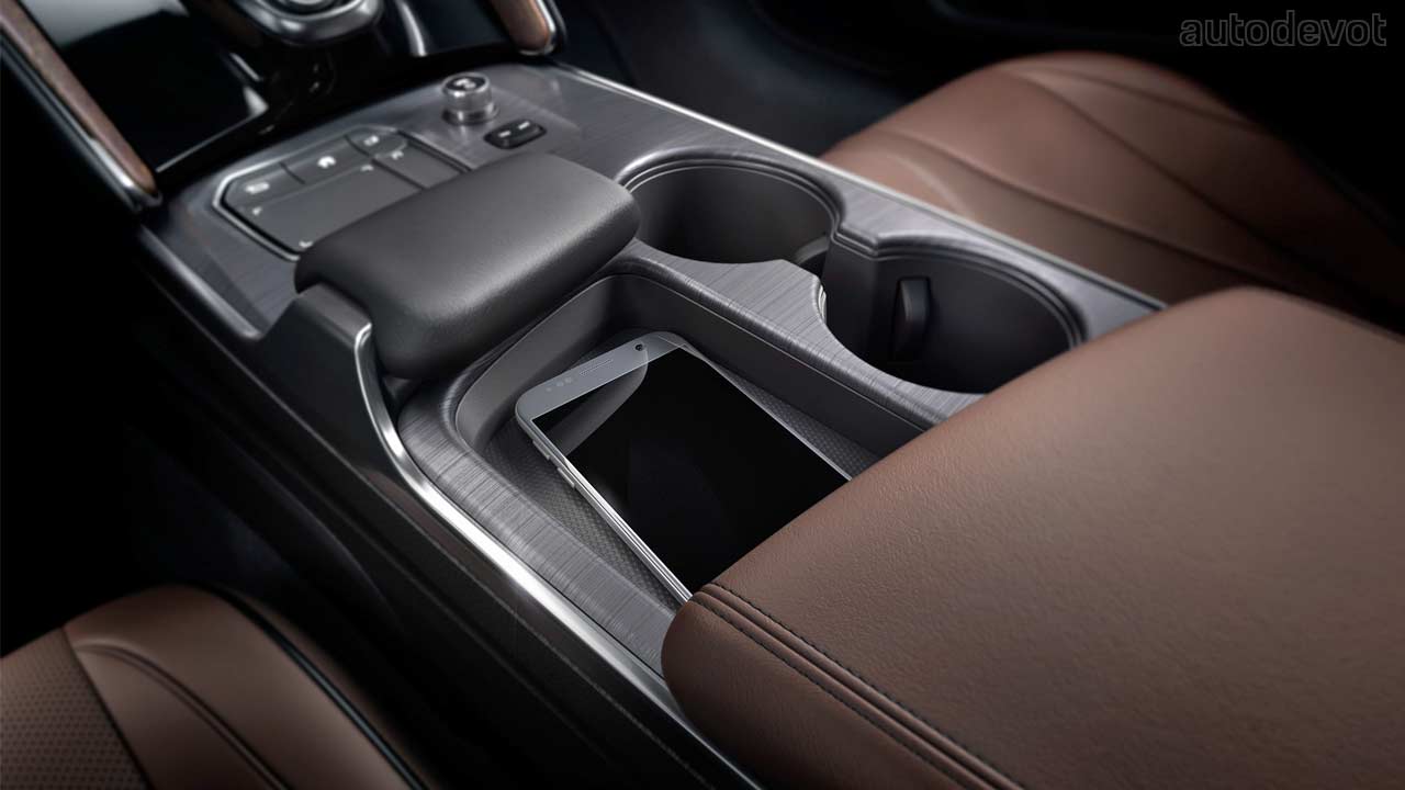 The drama has been carried over to the interiors too and the “Dual Personal Cockpit” design theme looks very impressive. The wide center tunnel creates a more personal space for both front-seat occupants, while its wider body is claimed to enable top-of-the-class hip and shoulder room (+0.5-inch and +0.7-inch, respectively). The materials used include real aluminum, open-pore wood and full-grain Milano leather.