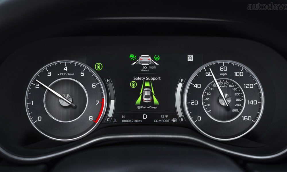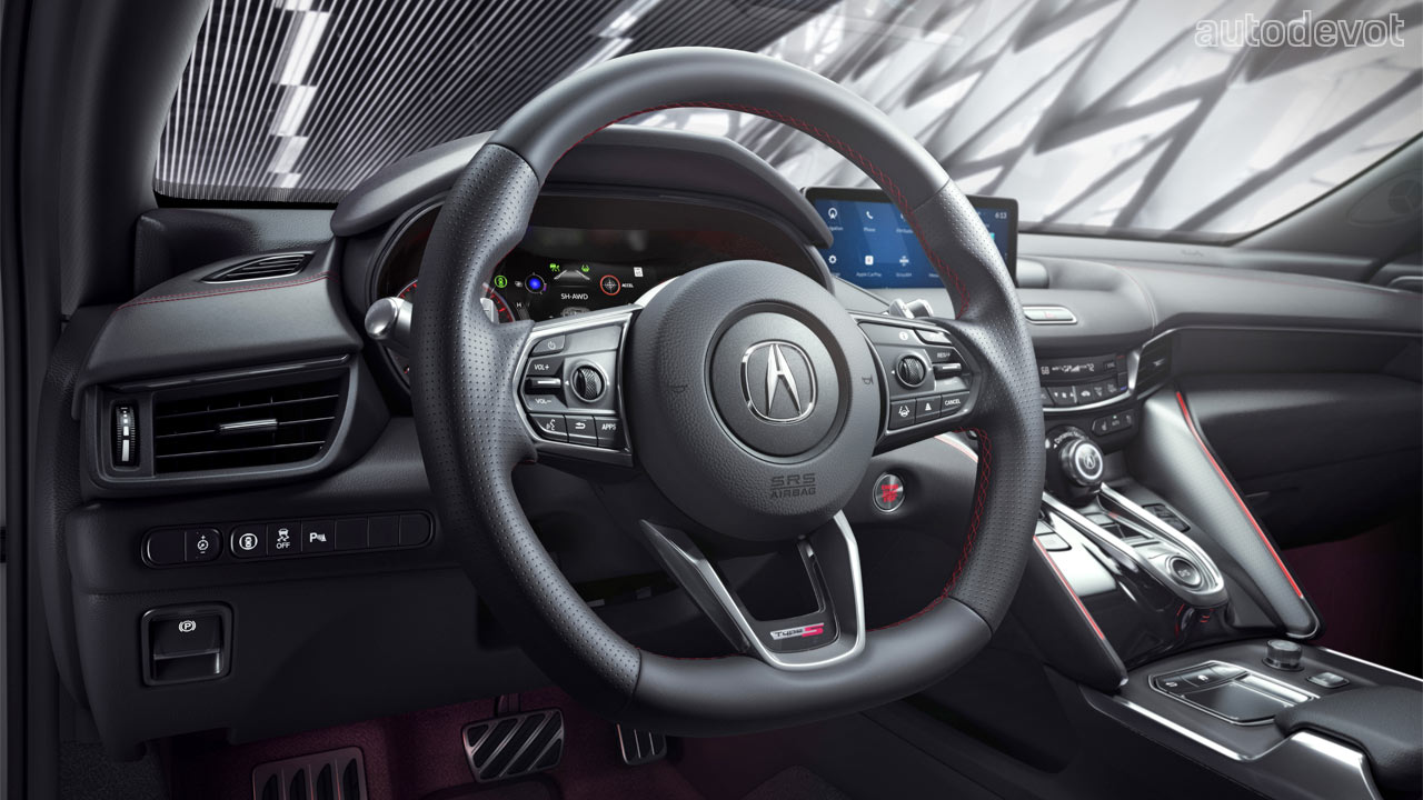 Other features and technologies include a 10.2-inch HD display, a touchpad, and a 7-inch full-color Multi-Information Display (MID). Options include a 10.5-inch full-color Head-Up Display, Acura ELS Studio 3D premium audio system, and ambient LED lighting with 24 selectable schemes – each named after popular driving roads.