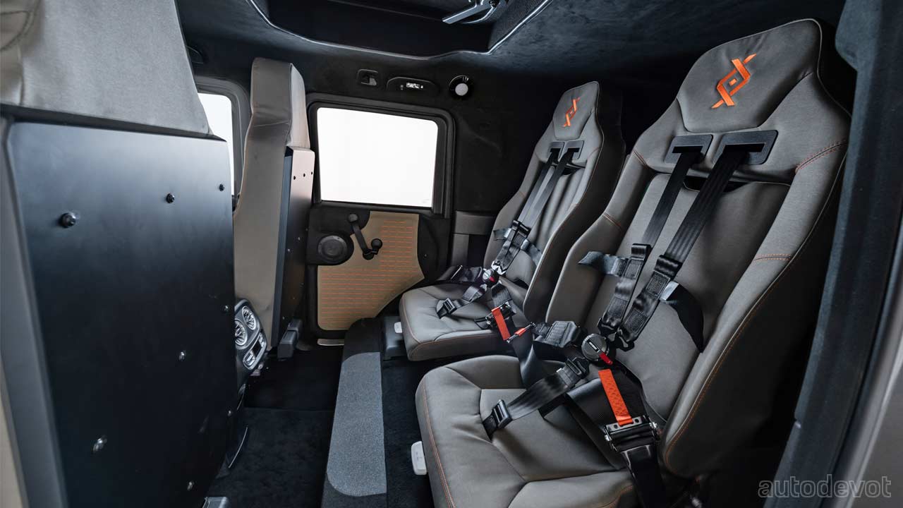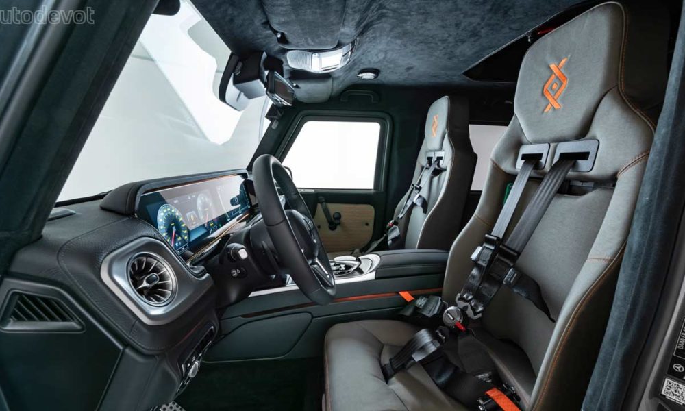 To protect the occupants, Brabus has developed what they call ‘Invicto Shelter Cell’. Unlike vehicles where the armor is retrofitted, the individual elements of the protection system here are not welded separately onto the body shell structure of the vehicle. The brabus engineers developed the protective cell as a self-contained, self-supporting and bolted-down unit. This design makes it possible to put it into the body shell of the G-Class part by part and then assemble and fasten it, the company said.