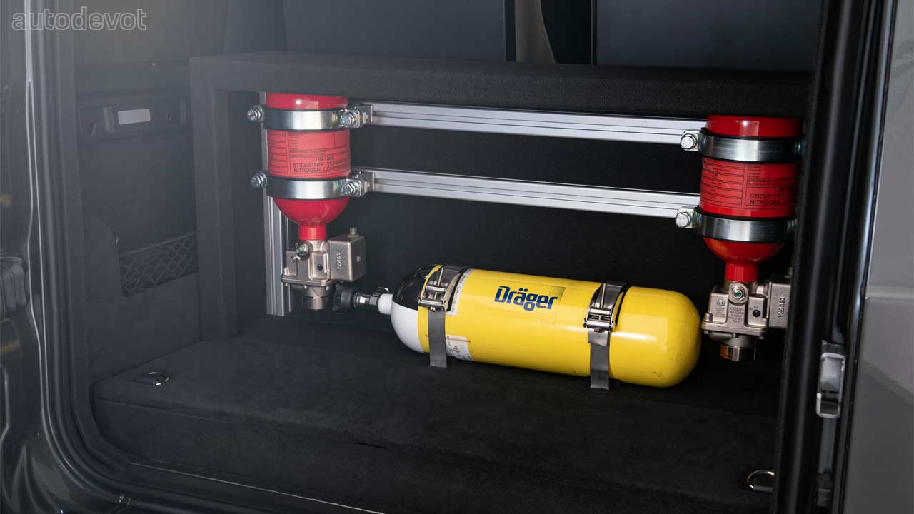 Brabus says that after extensive ballistics and explosives testing, the German National Testing and Certification Office for Weapons and Security Engineering, the Beschussamt Ulm, certified the Invicto as per the VPAM BRV 2009 and VPAM ERV 2010 standards. These armored vehicles can not only resist 7.62×39 mm rounds from an AK-47 but also hand grenades and 12.5 kg PETN explosives.