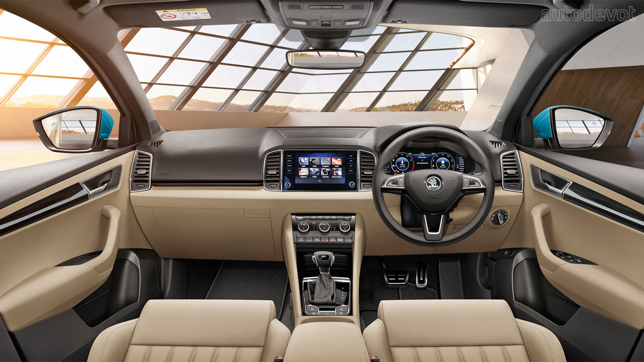 Powering the Karoq in India is a 1.5-litre (1,498 cc) 4-cylinder turbocharged petrol engine, producing 110 kW (150 hp) between 5000-6000 rpm and 250 Nm (184 lb-ft) of torque between 1500-3500 rpm. The engine is paired with a 7-speed DSG gearbox that drives the front wheels. Download the Karoq brochure here. More pictures here.