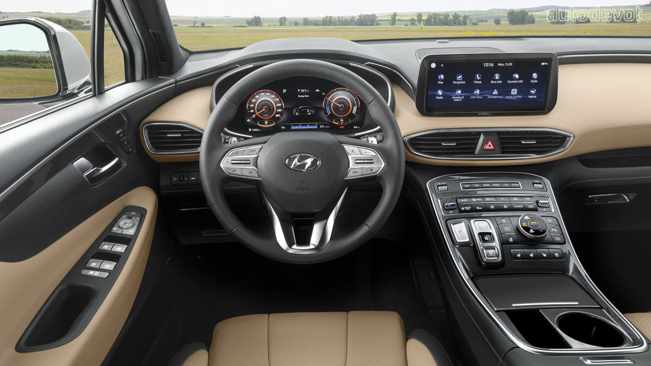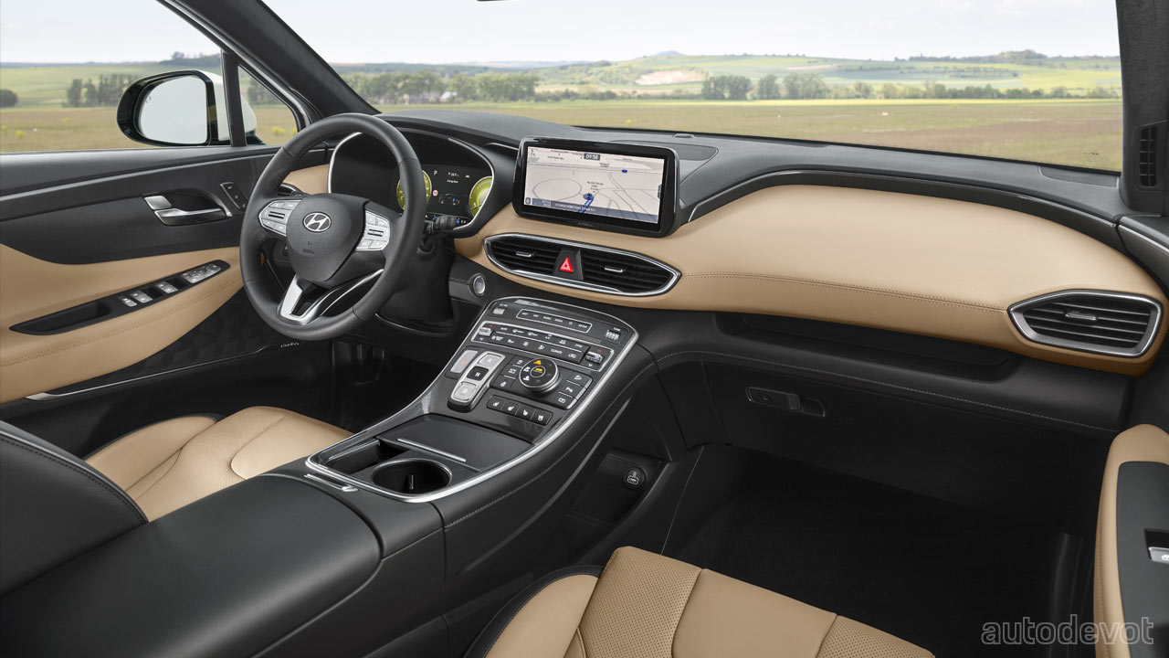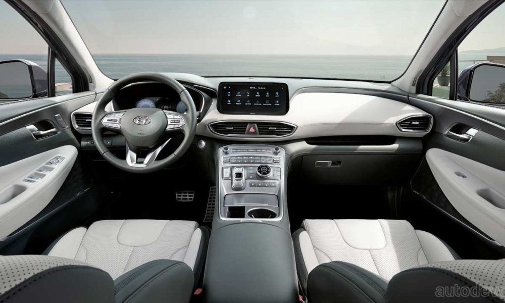 The updated interior features premium soft-touch materials, a redesigned centre console and of course, a new 10.25-inch touchscreen infotainment system. There are shift-by-wire buttons too, for RND selection. For the first time, the Santa Fe comes with a Terrain Mode selector knob, also located on the centre console.