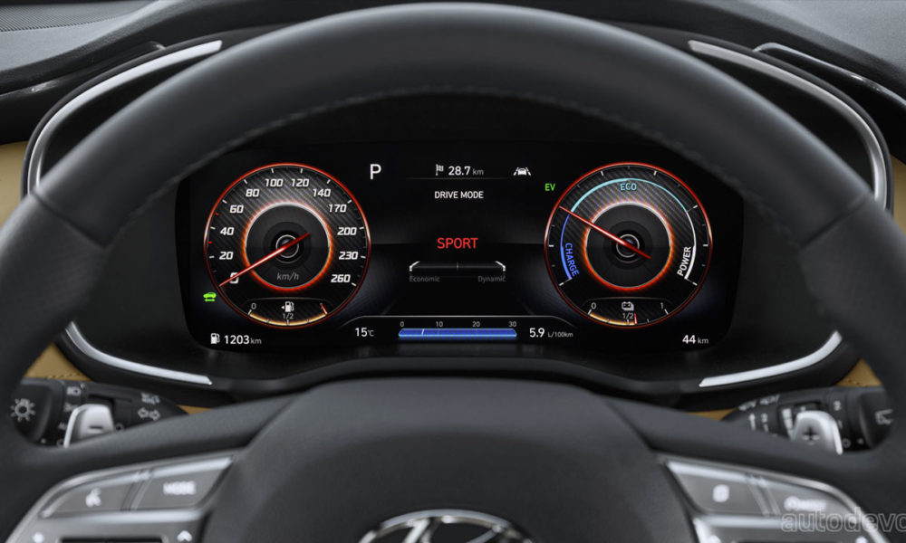 In addition to styling and feature updates, the Santa Fe has received hybrid and plug-in hybrid powertrains from the ‘Smartstream’ family. However, Hyundai has kept the details for another day.