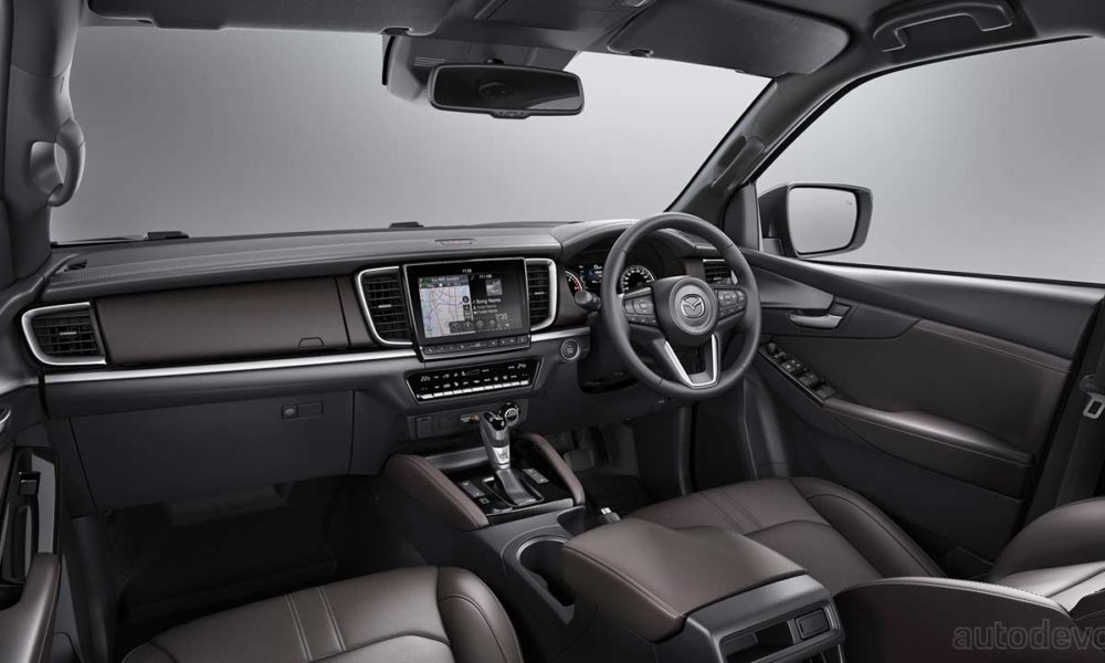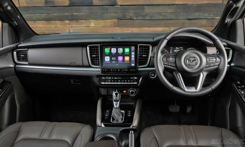 The Mazda design language continues through to the BT-50’s interior. Soft touch materials have been used on the dashboard and door pads to add a touch of premium-ness. Feature list includes Android Auto and wireless Apple CarPlay connectivity.