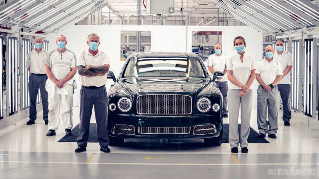 The Bentley colleagues gathered for some socially-distanced photographs with the final cars. Over 7,300 handcrafted Mulsannes were built at Bentley’s home in Crewe, Cheshire.