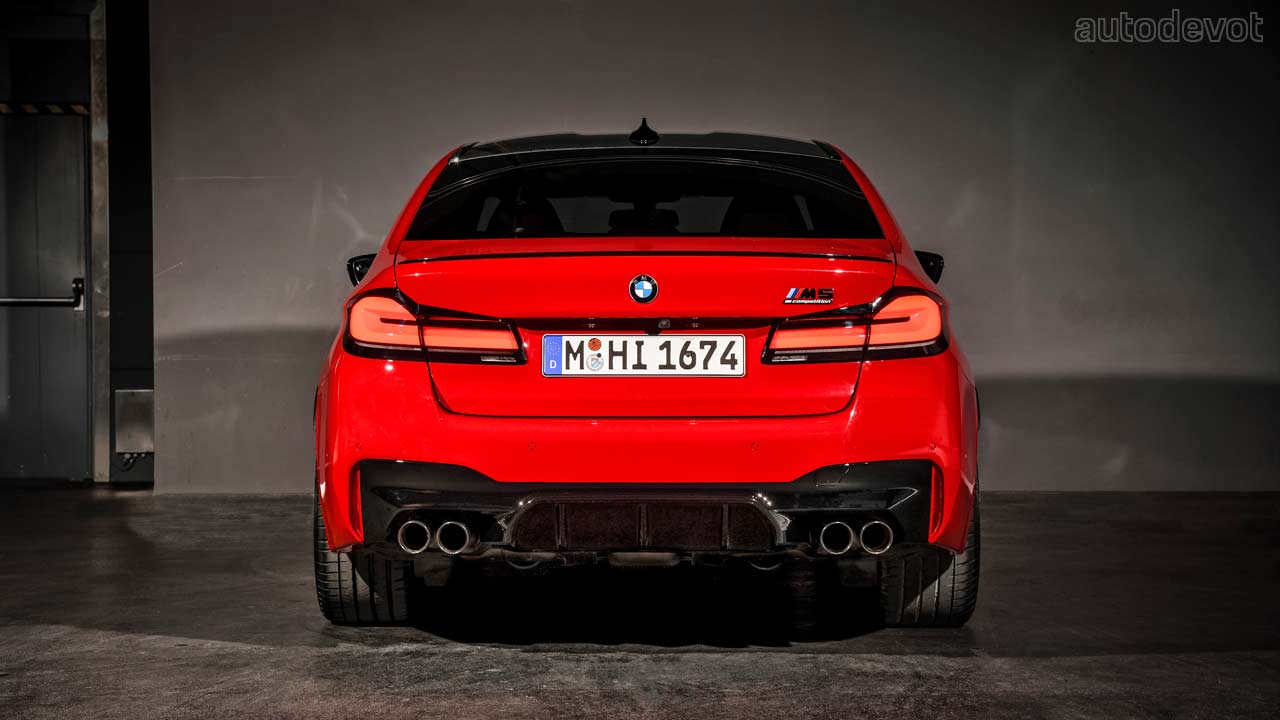 The updated 5 Series lineup we saw recently had the performance variant missing. It’s now here, finished in a hot new paint called Motegi Red metallic. The photos here feature only the new M5 Competition.