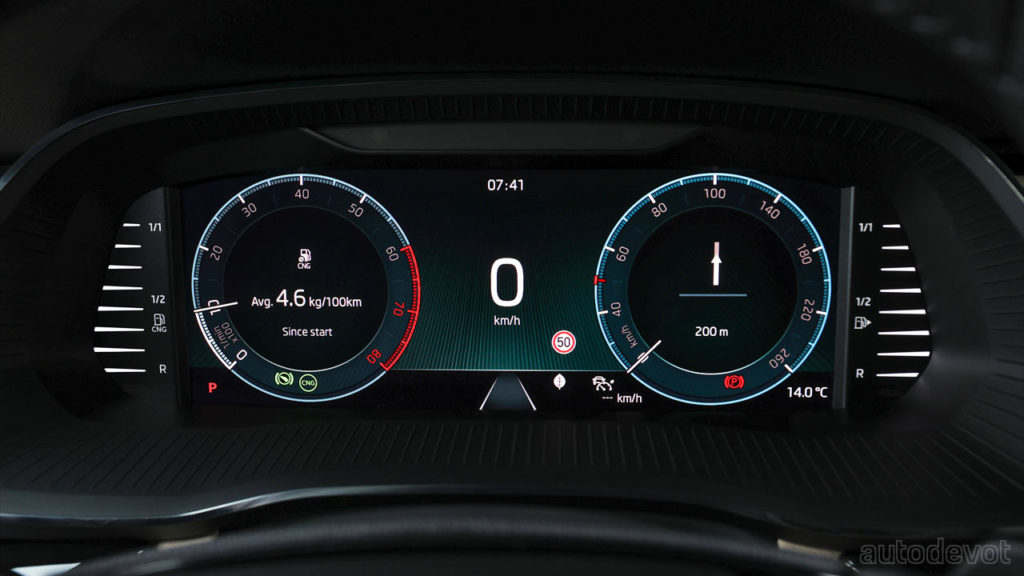 Boasting a CNG capacity of 17.33 kg (38.2 lbs), the Octavia G-TEC claims a range of up to 500 km (310 mi) in the WLTP cycle in natural gas mode. There’s also a 9-litre petrol tank, which helps take the vehicle to a further 190 km (118 mi), Skoda said. Switching between CNG and petrol mode happens automatically without driver intervention.