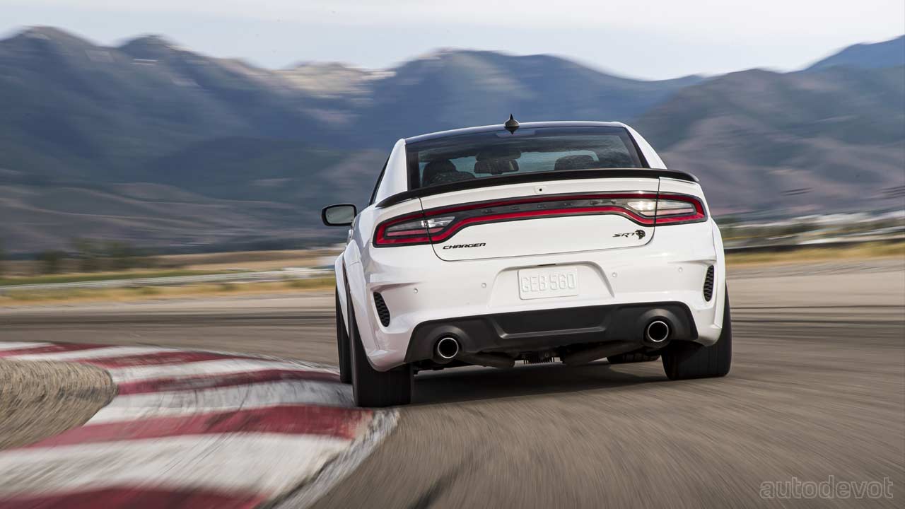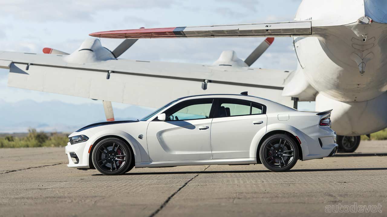 It gets an aggressive widebody exterior as standard, adding 3.5-inches of width to the vehicle. Complementing those looks are wide 20-inch light-weight Carbon Black wheels shod with Pirelli 305/35 ZR20 all-season performance tires. The hood scoop is functional. The SRT Power Chiller is standard on the Redeye, which lowers the intake air temperature further, resulting in improved performance.