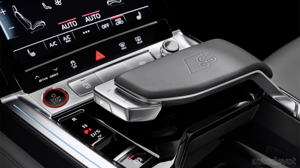 The dark interiors of the S models feature standard electrically-adjustable sport seats, S embossing on the gear selector lever and seats, Audi virtual cockpit, MMI touch response displays, dark brushed aluminum accents and so on. There are plenty of options too including open-pore carbon accents, ambient lighting package, head-up display and of course, the virtual exterior mirrors that replace the traditional ones with cameras.