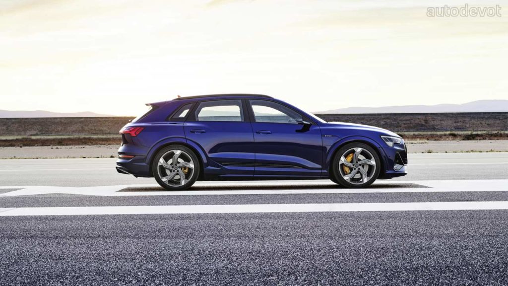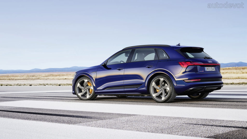 Unlike the aforementioned “normal” e-tron SUVs, the S models will get three electric motors; two at the rear axle and one at the front. They achieve a combined peak output of 320 kW (435 hp) and a peak torque of 808 Nm (596 lb-ft), which is already a significant increase over the normal e-tron models. However, in boost mode, the motors achieve 370 kW (503 hp) and 973 Nm (718 lb-ft) of torque.