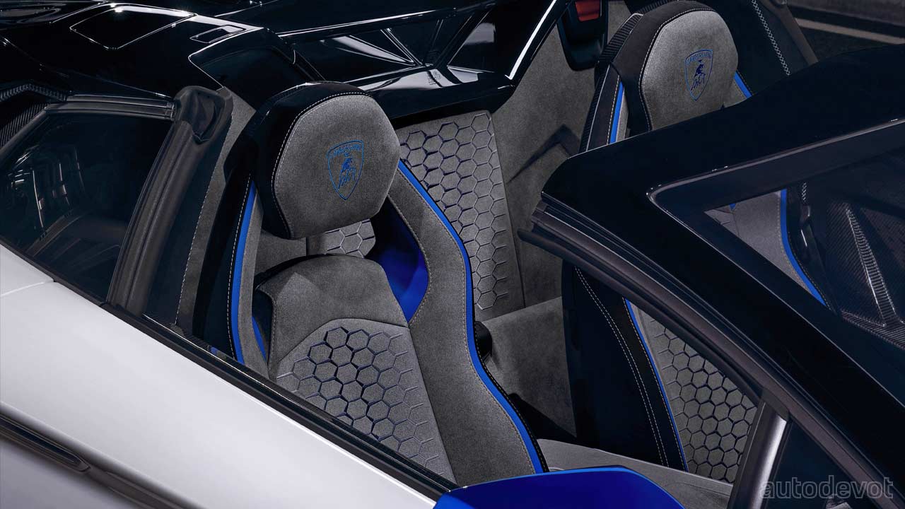 The exterior of the Aventador SVJ Xago edition features a fading hexagonal silver effect, with a unique Ad Personam contrast color livery for each car and gloss black Nireo Ad Personam rims. The interior features an exclusive seat pattern with hexagonita theme, and a contrast color matching the exterior. Each of the 10 Aventador SVJ Xago units will be identified by a numbered plate.