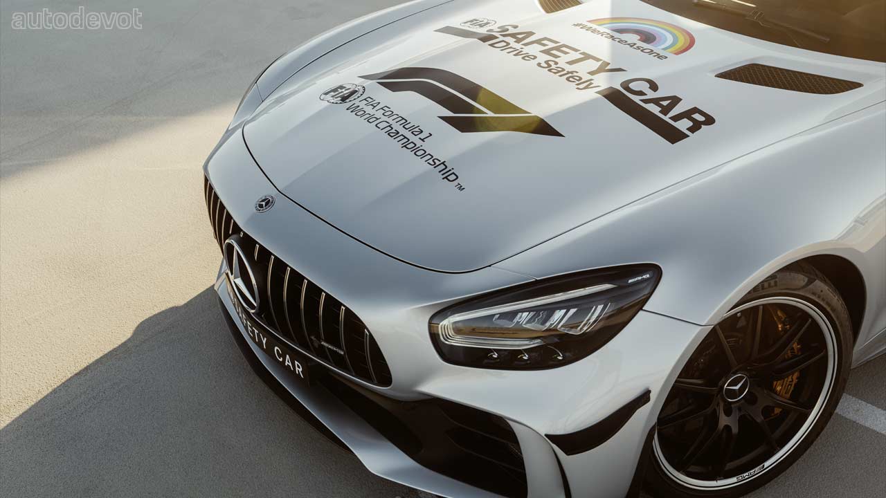 The GT R succeeded the GT S as the Official FIA F1 Safety Car in 2018 with Bernd Mayländer at the steering wheel. Mechanically, the safety car remains mostly unchanged from the production version except for the inclusion of optional features such as the AMG Track Package with roll-over protection and the ceramic composite brake system.