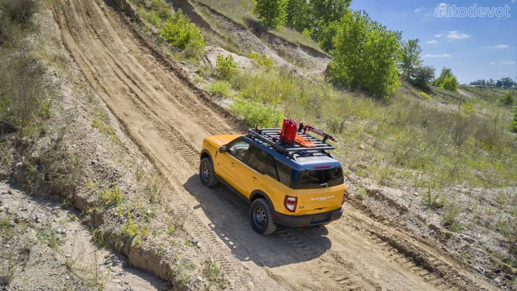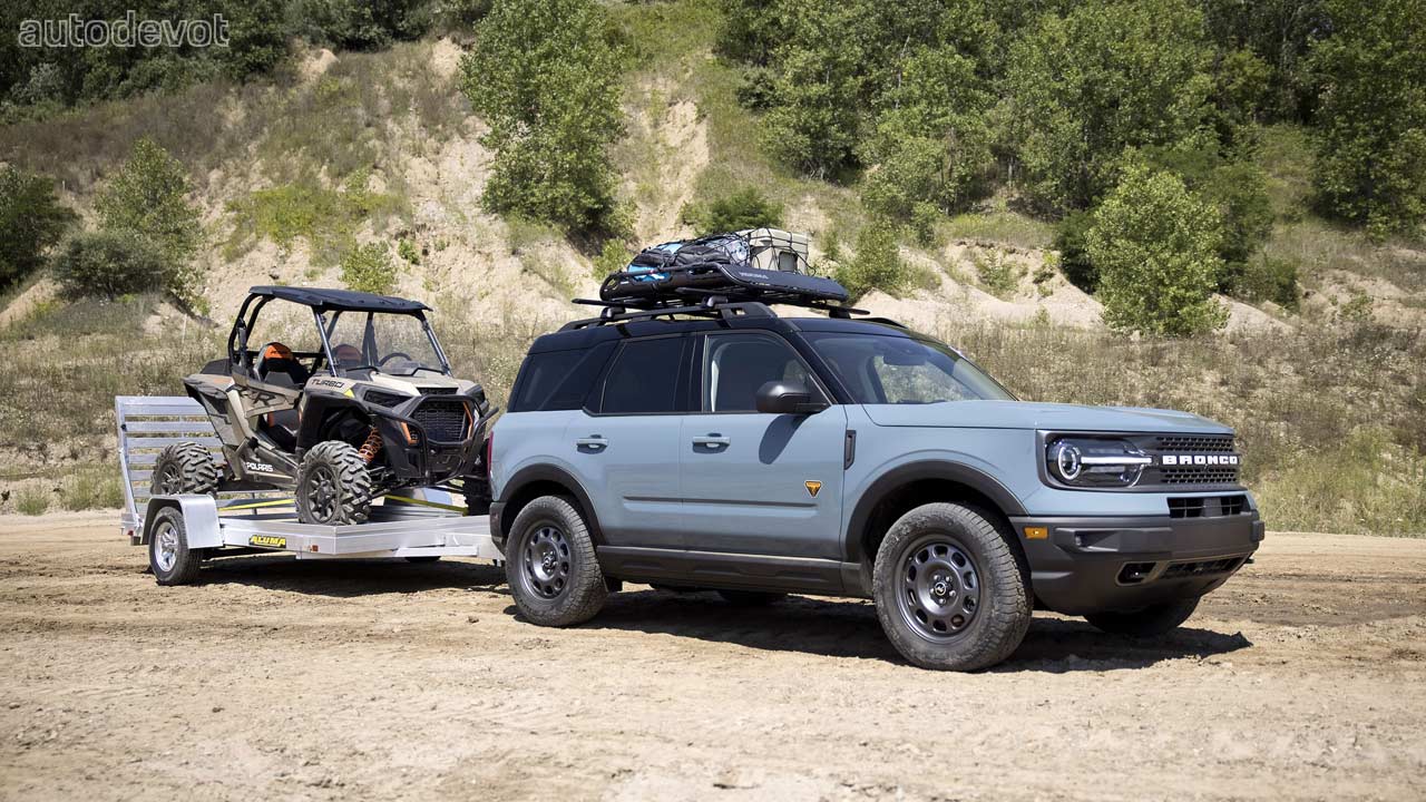The fourth one is the Bronco Sport TOW RZR. Based on the Badlands trim, it gets Yakima HD Bar crossbars, cargo basket, and Class II Trailer Tow Package with 2,200 lbs (998 kg) of capacity to tow all-terrain vehicles like the new Polaris RZR XP Turbo.