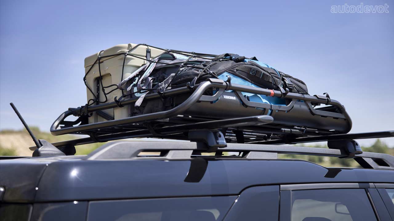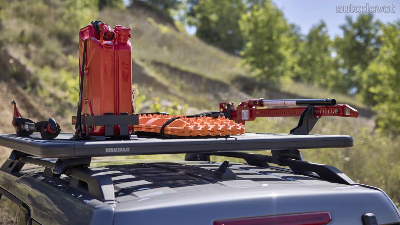 A Yakima LockNLoad roof rack platform, off-road gear mounts to carry a high-lift jack kit; and recovery boards and jerry cans round off the package.