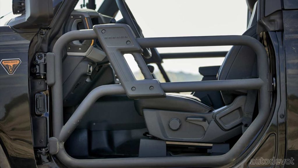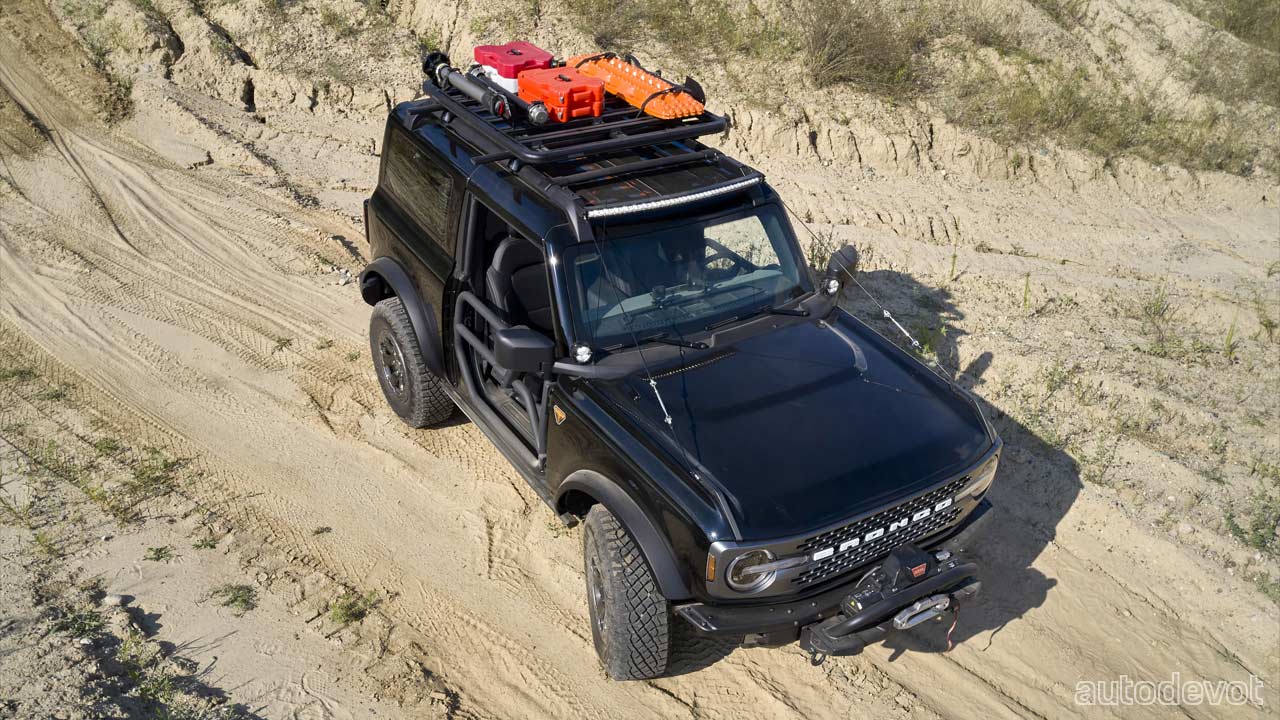 The second one is the Bronco Two-Door Trail Rig. Based on the Badlands trim, it gets a Ford Performance modular front bumper, tube doors, beadlock-capable wheels and a 40-inch LED lightbar.