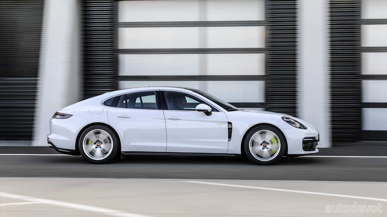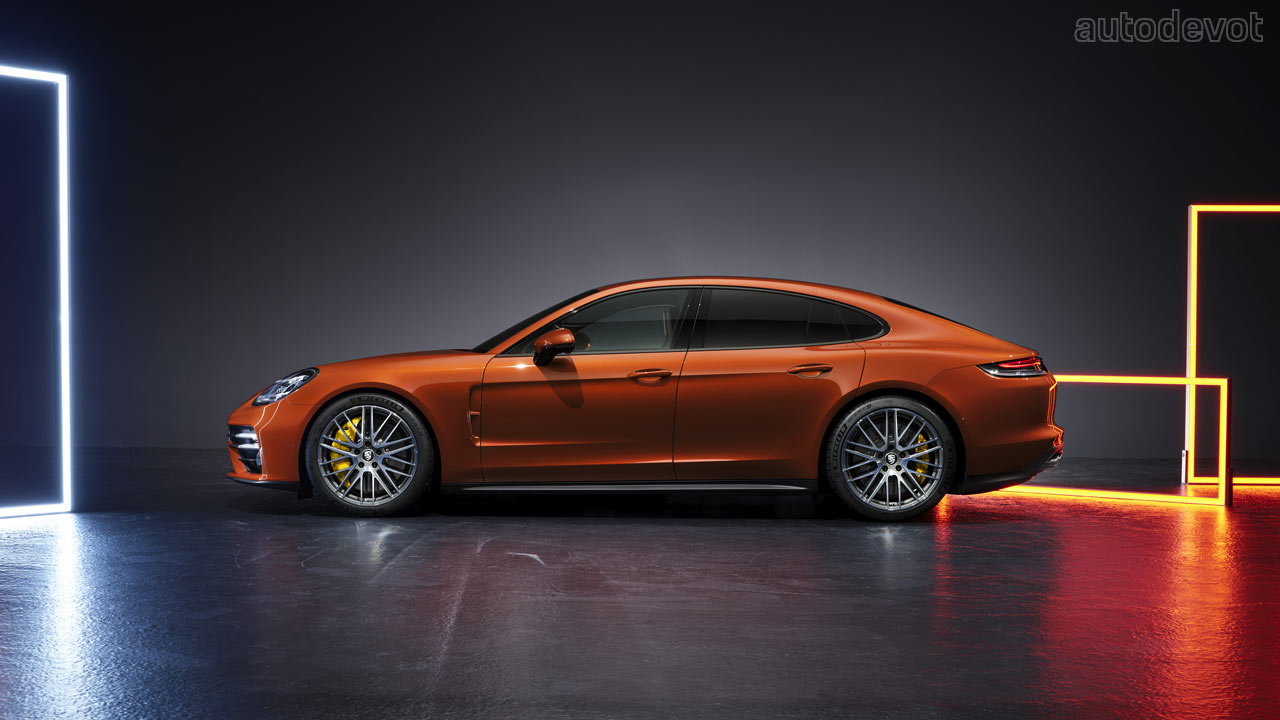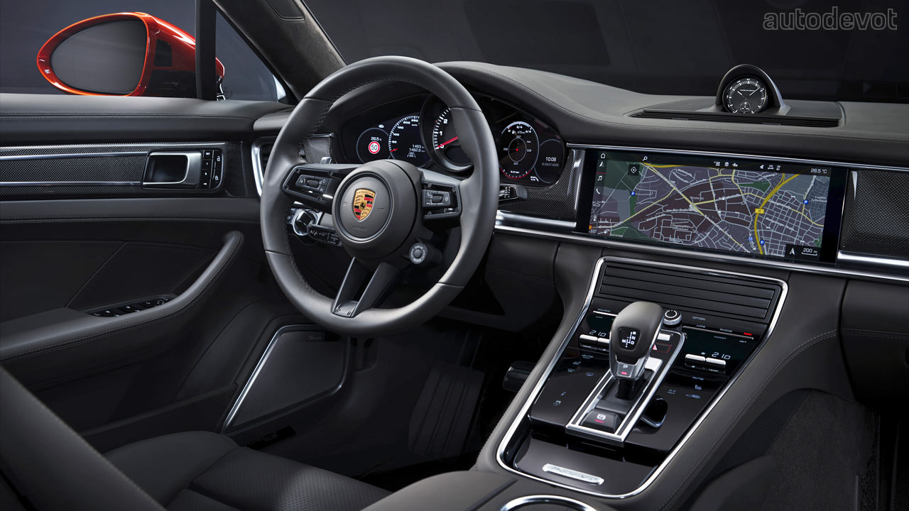 The revised lineup also includes the Panamera 4S E-Hybrid. The 2.9-litre (2,894 cc) V6 biturbo engine is combined with an electric motor that is integrated with the 8-speed dual-clutch PDK gearbox. The ICE offers 440 metric hp (324 kW) and 550 Nm (405 lb-ft), while the e-motor develops 136 metric hp (100 kW) and 400 Nm (295 lb-ft) of torque. The combined figures are 560 metric hp (412 kW) and 750 Nm (553 lb-ft) of torque, which is 98 hp and 50 Nm (37 lb-ft) more than the Panamera 4 E-Hybrid. However, Porsche is yet to reveal the updated Panamera Turbo S E-Hybrid, which currently offers 680 hp.