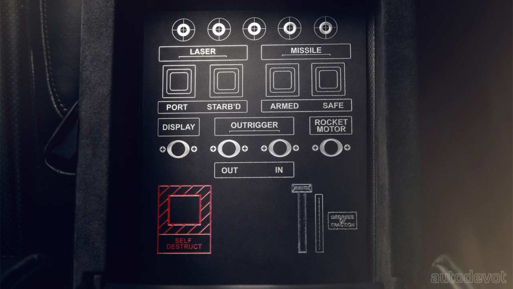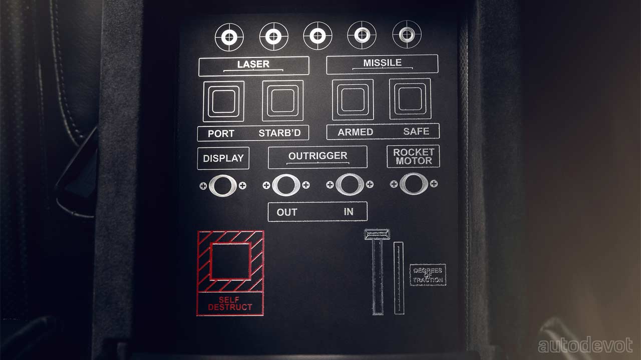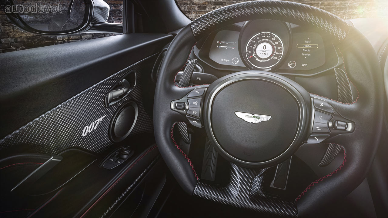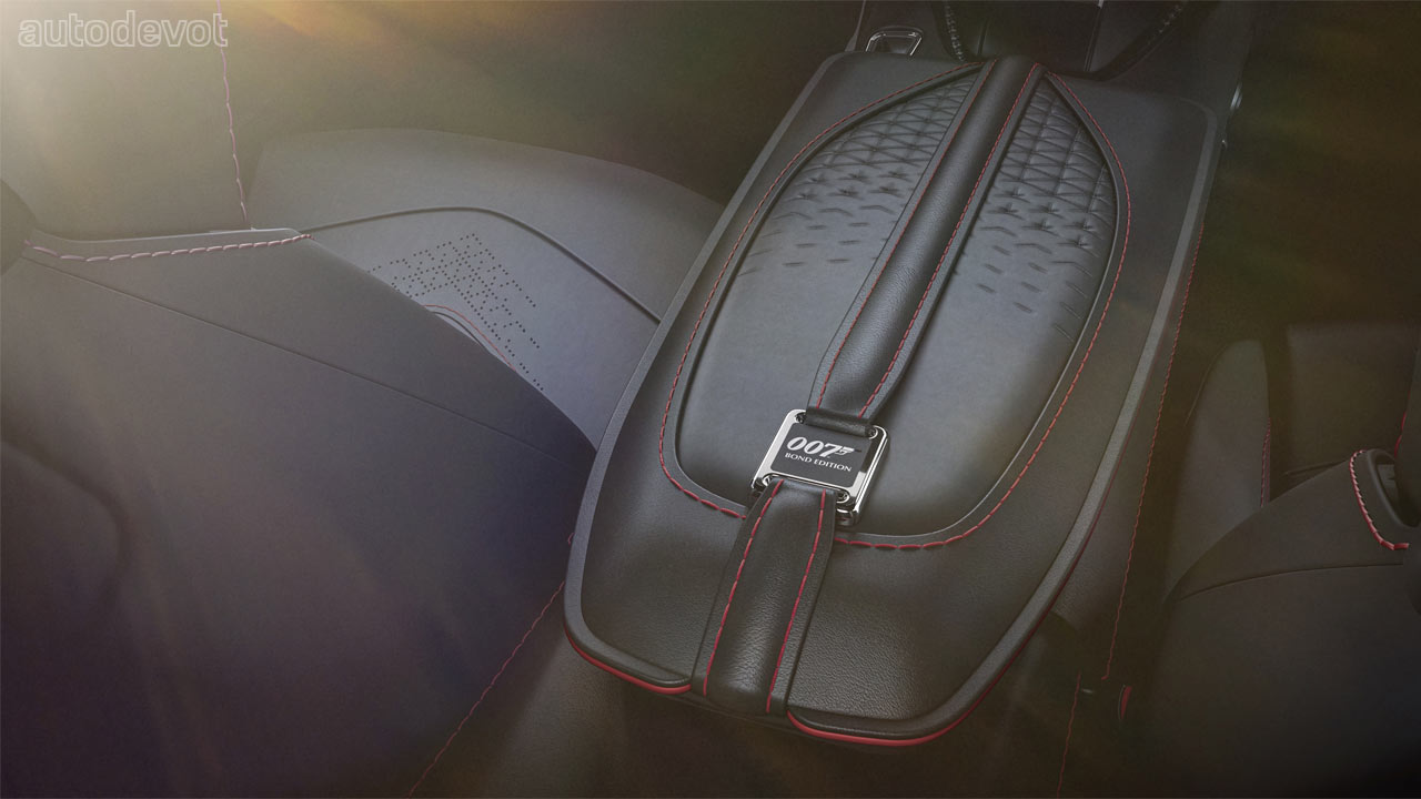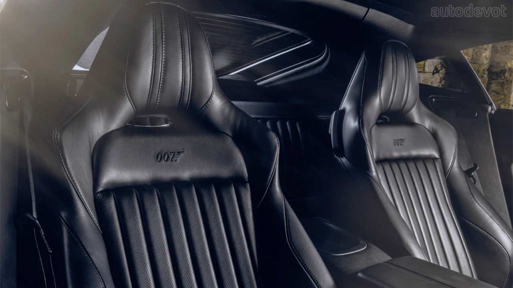 Inside, the cockpit is finished in obsidian black leather and dark chrome with 007 branding on the centre console of the cars equipped with a manual gearbox. Other references to the film include embroidered radio station frequency on the sun visors, and crosshairs etched onto the paddle shifters alluding to the missile guidance system seen in the film.
