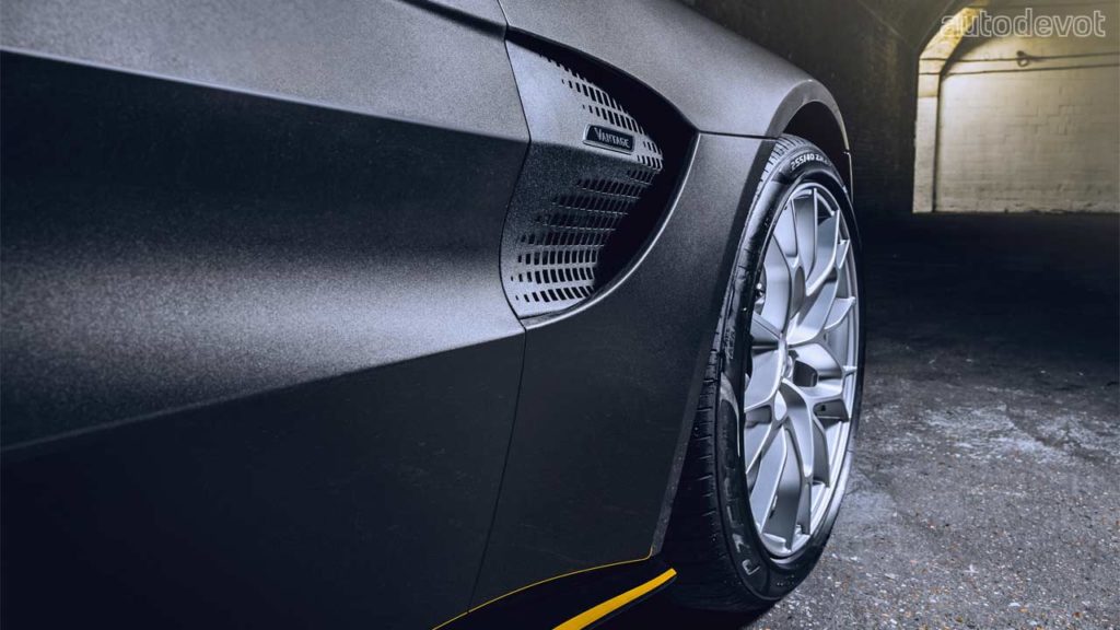 No mechanical changes on the Vantage 007 Edition either. It packs an AMG-sourced 4.0L V8 biturbo motor that pumps out 510 metric hp (375 kW) and 685 Nm (505 lb-ft) of torque.