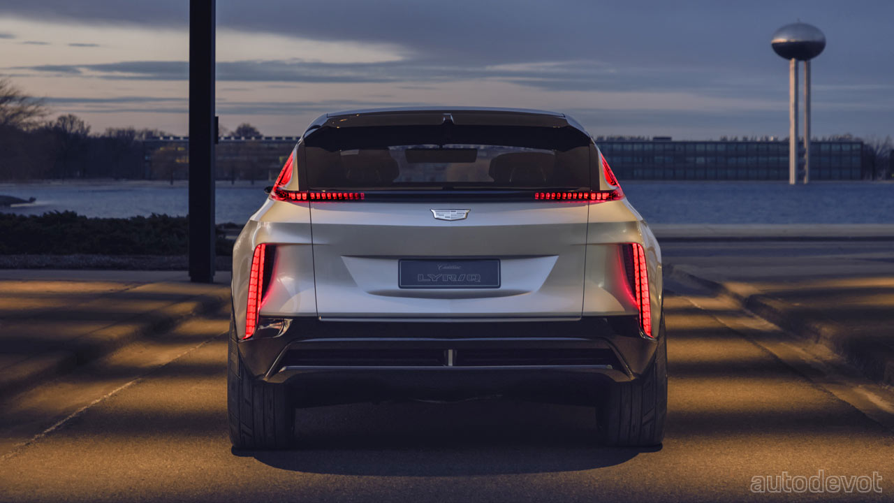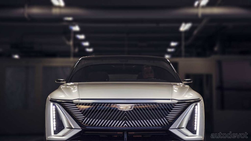 As for the styling, the Lyriq flaunts an evolved version of Cadillac‘s latest design language with a vertical LED signature. The “black crystal” grille at the front is part of a dramatic lighting choreography, which together with the aforementioned vertical LED signature, greets the owner upon approach. However, we’re not yet sure which ones are the headlights. Perhaps, it’s the inner one?