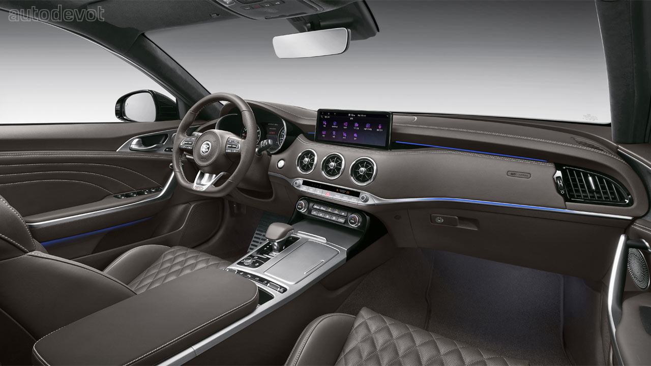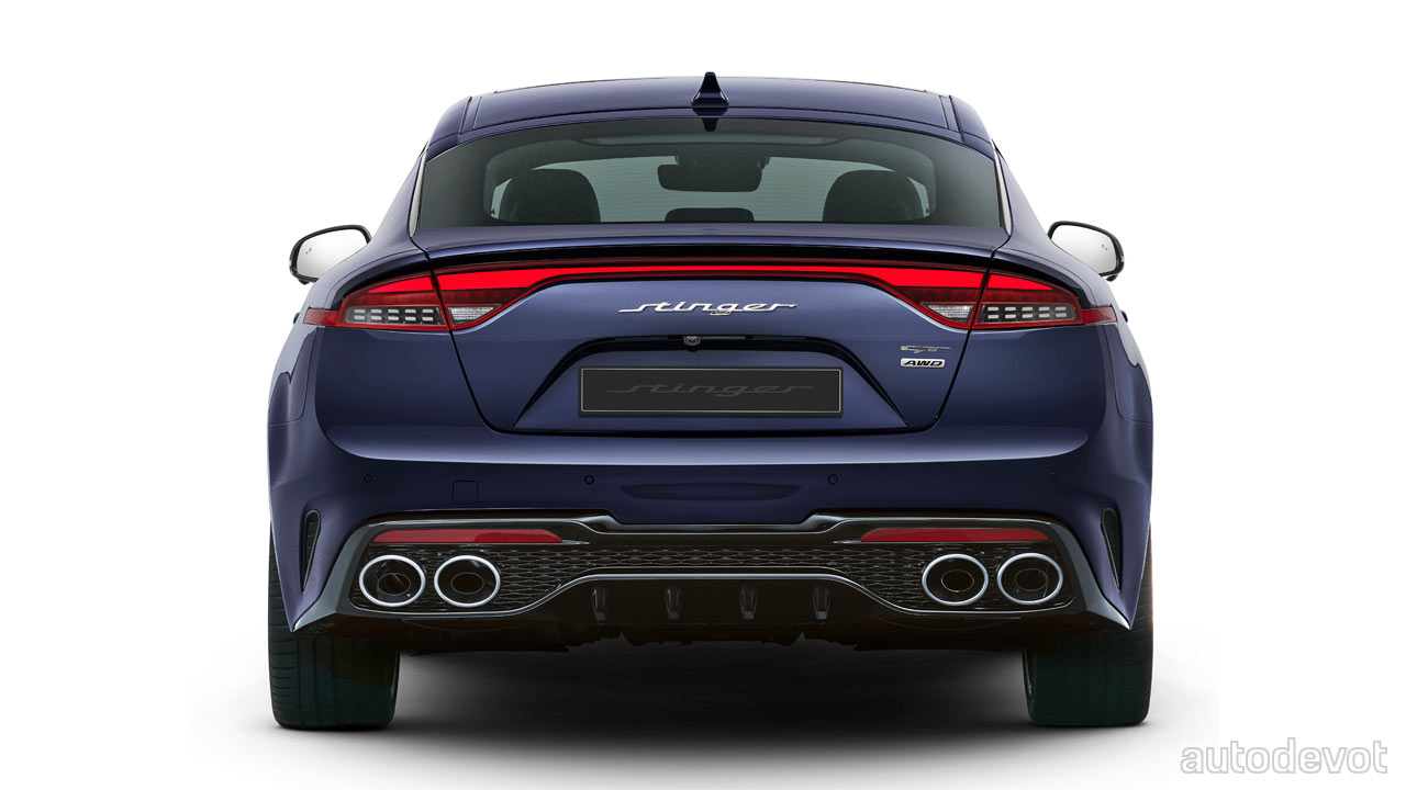 In addition, there are two new exterior packages for the first time. For high-performance variants, the ‘Dark Package’ adds a gloss black diffuser surround and black wide-bore exhaust tips. The Stinger logo on the tailgate is also finished in black. North American markets get a ‘Black Package’ that includes new 19-inch matte black light-weight wheels, an integrated spoiler for the trunk lid, and blacked-out mirror caps and side fender trims.