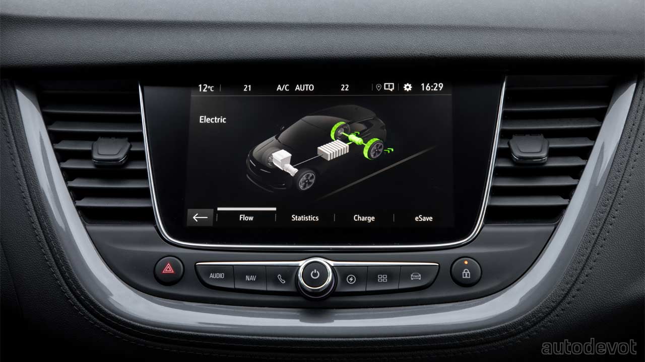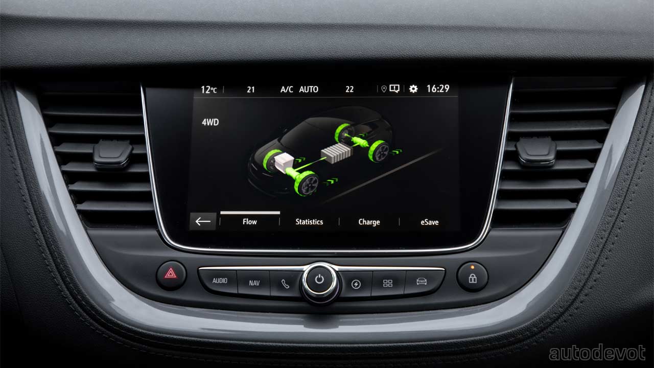 The Grandland X PHEV is available in both FWD and AWD variants. The Hybrid4 AWD with a 1.6L petrol engine and two electric motors offers a system output of up to 221 kW (300 hp), while the FWD (single e-motor) with a system output of 165 kW (224 hp) is not bad either.