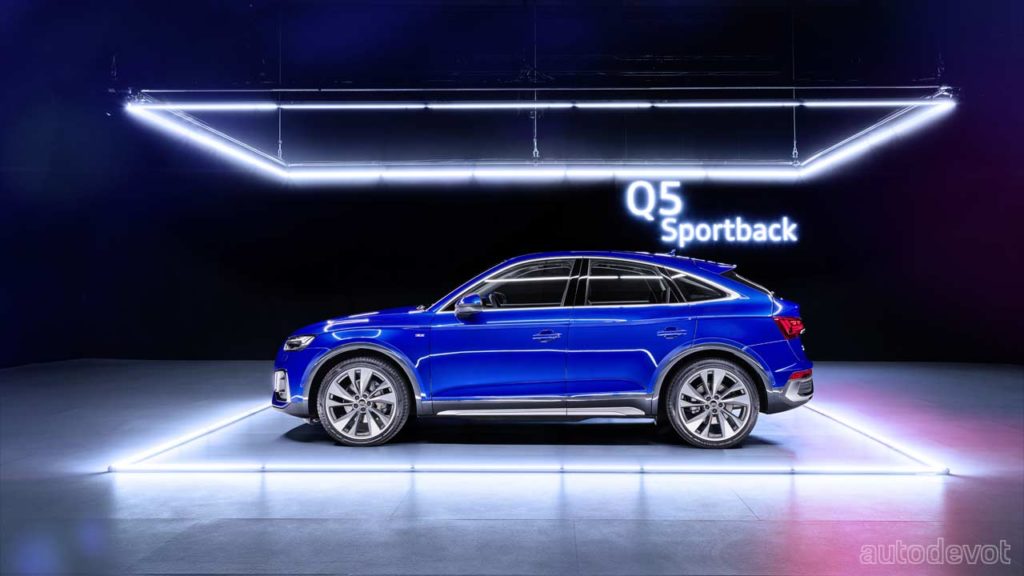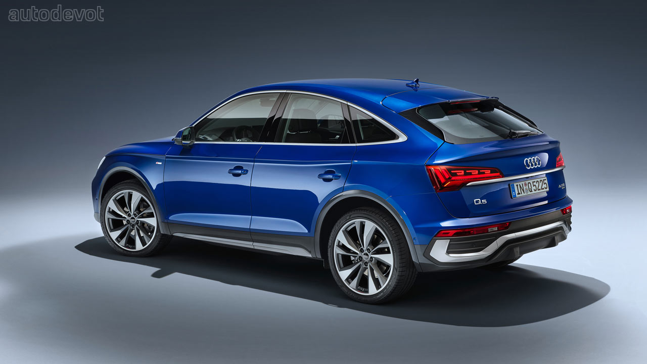 At launch, the new Q5 Sportback will receive a 2.0-litre TFSI engine combined with a 12-volt mild-hybrid system, developing 265 hp (195 kW) and 370 Nm (273 lb-ft) of torque. The SQ5 Sportback will pack a 3.0 TFSI V6 engine with 354 hp (264 kW) and 500 Nm (369 lb-ft) of torque.