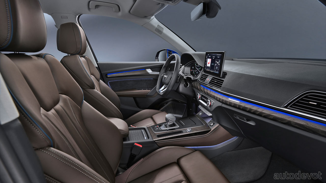 The cabin too doesn’t look all that different from the regular Q5; however, notice the headroom curvature at the rear to compensate for the sloping roofline. Features include a 12.3-inch Audi Virtual Cockpit Plus, a Head-Up Display, and a 10.1-inch MMI Navigation Plus infotainment system. The options list also includes a Bang and Olufsen sound system with 3D sound.