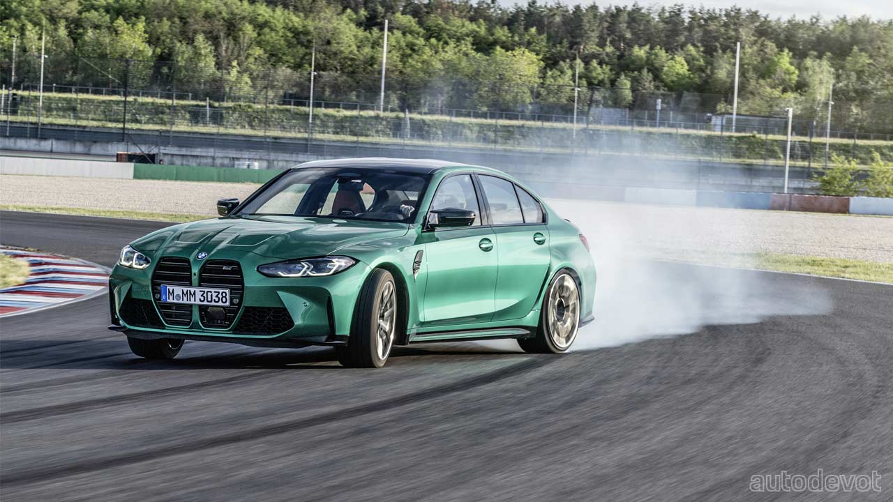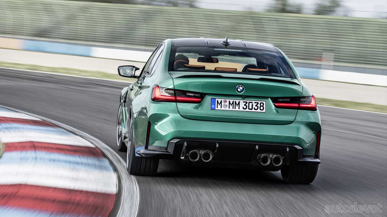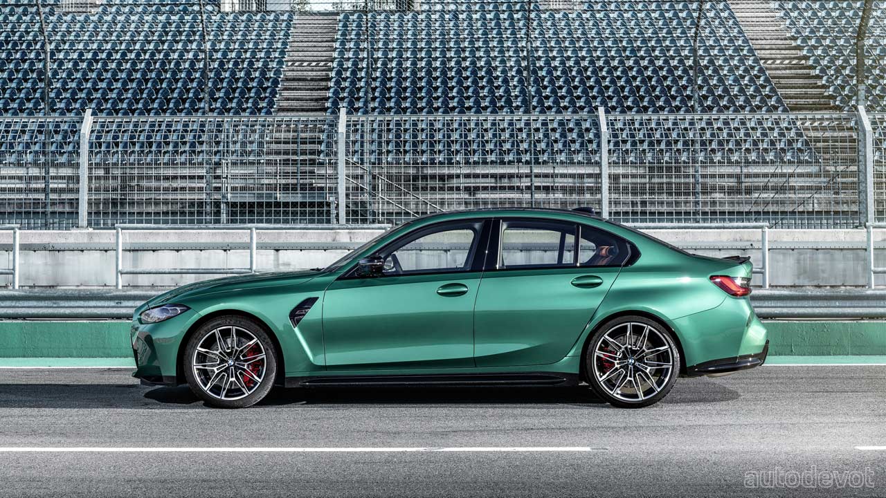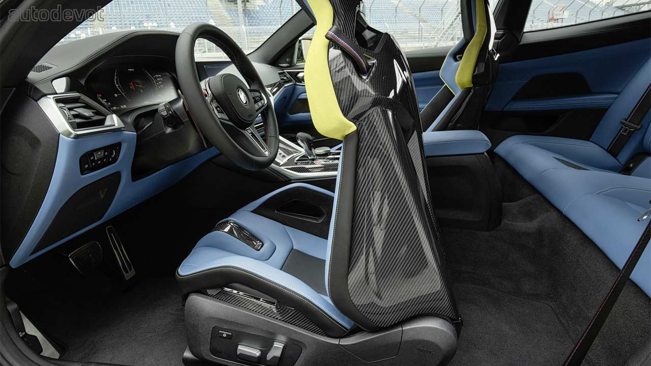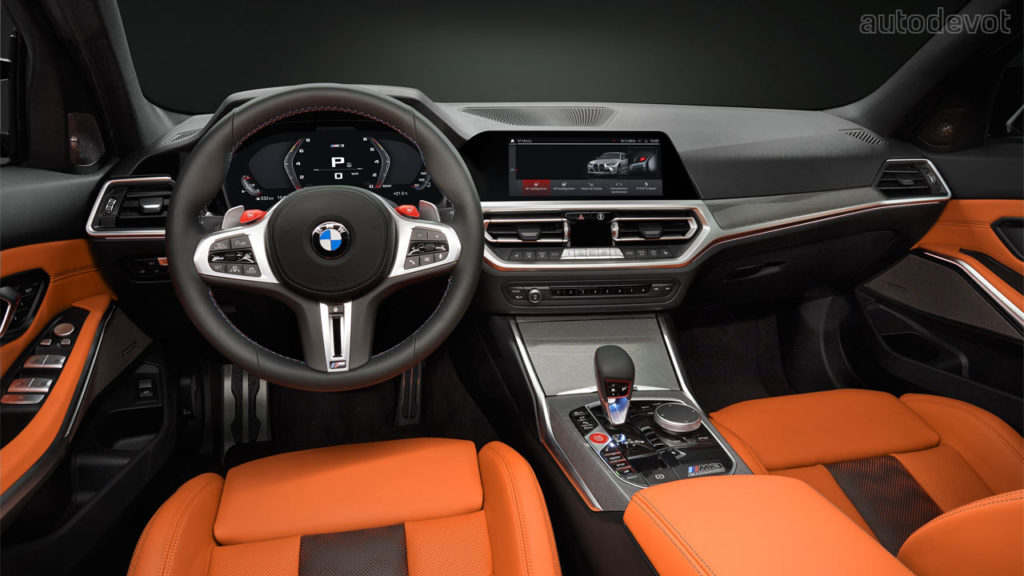 The black grille-sort-of-a-thing you see on the front fender is just a plastic insert, but otherwise, the rest of the car looks pretty good. Both models also get CFRP roof as standard, which further cuts down the weight. Speaking of weight, the M3 Sedan’s unladen weight is 1,705 kg (3,759 lbs) while the Competition model weighs 25 kg (55 lbs) more. As for the M4 Coupé, the unladen weight is 1,700 kg (3,748 lbs) and its Competition sibling weighs 25 kg (55 lbs) more as well.
