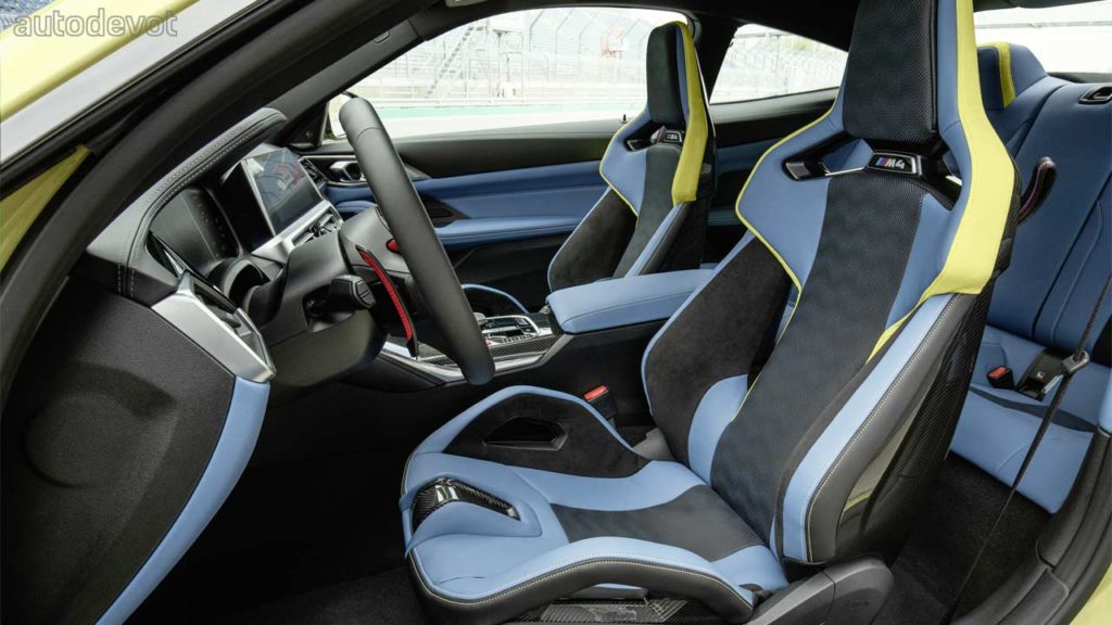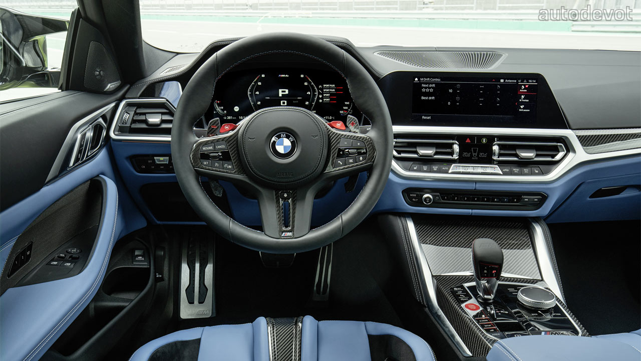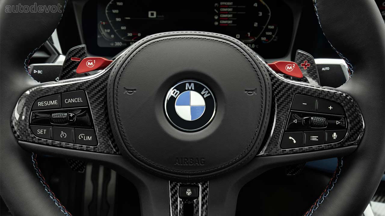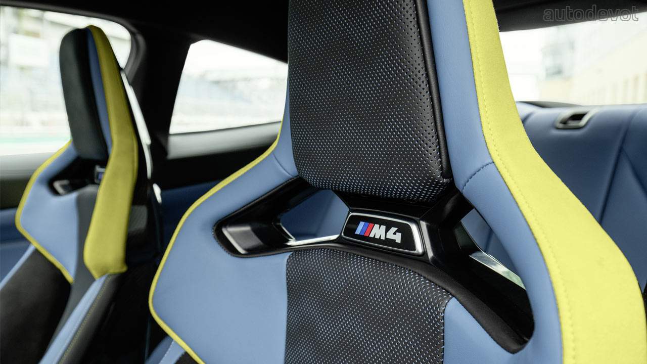 Unlike the polarizing exterior, the cockpit looks great, especially in the new M4 Competition Coupé with those optional M Carbon bucket seats that offer a wide range of electric adjustment. The example here has an interior combination of Yas Marina Blue/Black with Yellow accents. There’s also a generous application of carbon fibre for decoration. The rest of the features are the usual stuff such as a 12.3-inch digital instrument cluster, a 10.25-inch central display, and a host of driver assistance systems. The options list includes a Head-Up Display and 16-speaker Harman Kardon sound system.