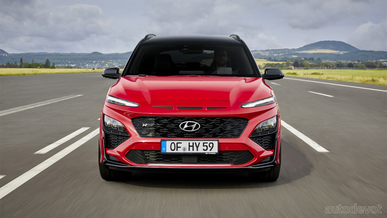 The interior might not look all that different from the outgoing Kona, but if you look again, you’ll find a larger 10.25-inch touchscreen display which is optional, and there’s also a 10.25-inch digital instrument cluster that debuted in the new i20. The N Line interior (bottom two photos) gets the typical, all-black theme with red contrast stitching and piping. The graphics on the instrument display is also in red for the N Line.