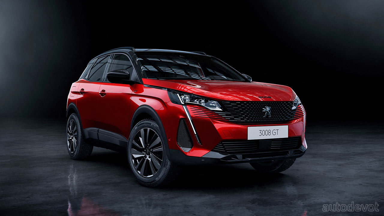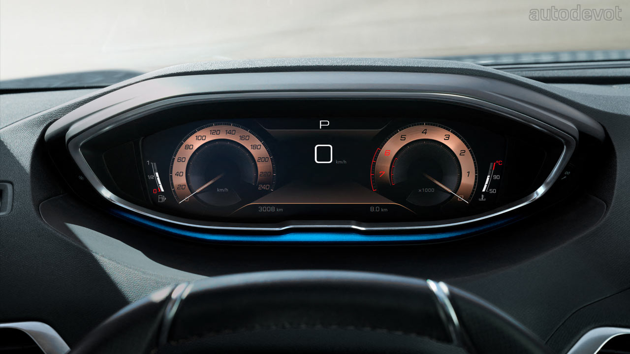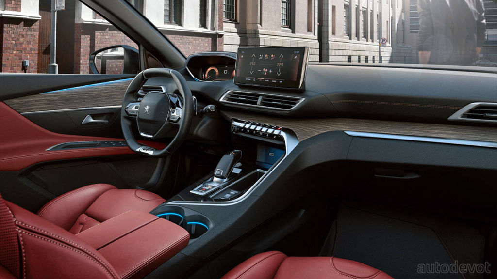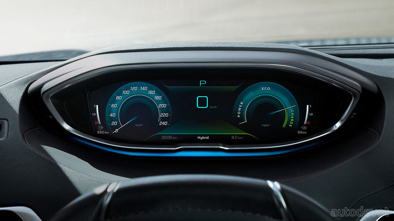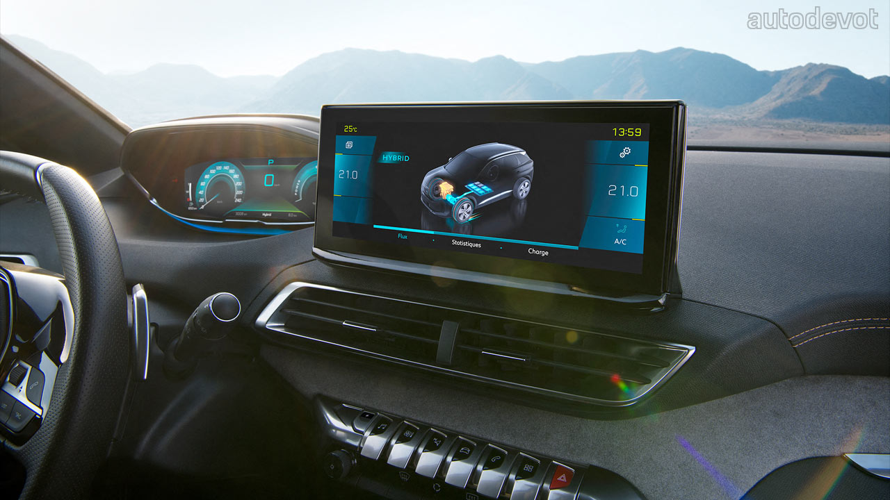 Inside, the 3008 gets the same i-Cockpit system comprising a 12.3-inch digital instrument cluster and a 10-inch central infotainment display, and the same materials too, including red Nappa leather upholstery and Alcantara lining. The hybrid variants feature a specific graphics on the i-Cockpit.