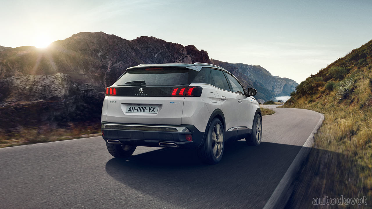 There are two choices for the hybrid: Hybrid4 300 e-EAT8 (AWD) with 59 km (36 mi) of EV range and Hybrid 225 e-EAT8 (FWD) with 56 km (34 mi) of EV range. The AWD obviously has two electric motors; one at the front axle coupled to the 8-speed gearbox and another on the rear axle. The lithium-ion battery pack is of a 13.2 kWh capacity, and can be recharged with a 3.7 kW single-phase charger as standard or with the optional 7.4 kW single-phase charger; the latter is claimed to take 1 hour 45 minutes to fully charge the battery. More details can be found here.