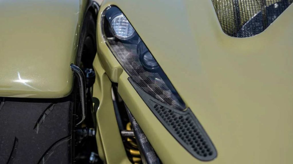 The JD70 is built on a hybrid chassis that combines a tubular steel ladder frame with carbon fibre and aluminum. The bodywork itself is made of a carbon fibre and Kevlar weave, and as per the buyer’s choice, can be painted or be left naked with a lacquer coating in either matte or polished finishes.
