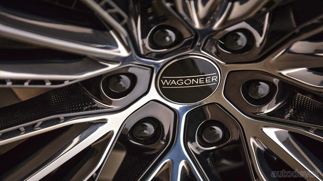 Rounding off the Grand Wagoneer concept’s exterior looks are the massive, 24-inch Obsidian-finished aluminum wheels featuring 3D-printed elements and a wheel cap with a Wagoneer logo.