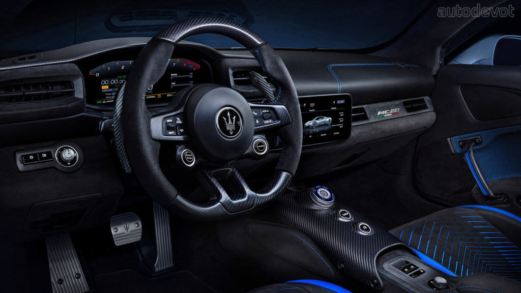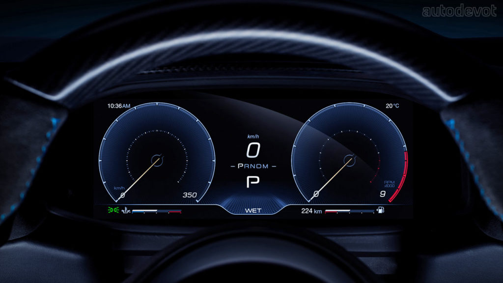 The MC20 is the first Maserati to feature the butterfly doors which make it easier to get in and out. Anyway, as with the exterior, the designers have resisted the urge to go overboard for the interior with crazy lines, swooshes and whatnot. The cockpit looks fairly simple and minimalistic.