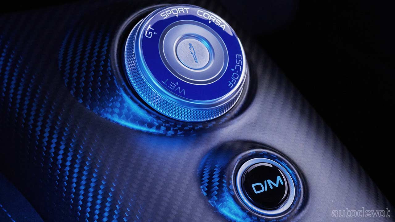 In case you haven’t noticed it already, the carbon fibre central console features the drive mode selector knob that also houses the damper settings button in the middle. There are Wet, GT, Sport and Corsa modes to play with. The ESC can also be turned off.