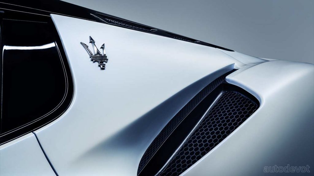 Overall, it’s a clean design with functional aerodynamics that doesn’t make the car look too busy or aggressive. Also, notice the engine bay cover with openings that resemble the trident logo. Maserati says that designing the MC20 took about 24 months. Thanks to the extensive usage of carbon fibre and other lightweight materials, the MC20 boasts a kerb weight of less than 1,500 kg (3,307 lbs).