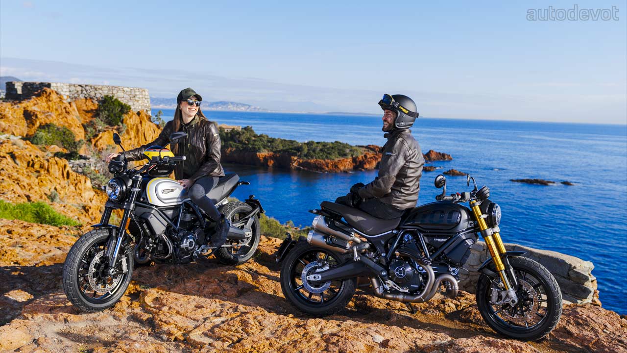 The Scrambler 1100 Pro gets a new ‘Ocean Drive’ colour scheme, combined with a steel trellis frame and rear aluminium subframe, which are both black. It mounts Marzocchi suspension at the front and Kayaba at the rear. The 1100 Sport Pro on the other side is the beefiest version in the Scrambler family. It features all the styling elements of the Pro, but differs with a Matt Black paint scheme, complemented by side panels sporting a painted 1100 logo. It also gets Öhlins suspension — a 45 mm upside-down fork at the front and a monoshock at the rear with adjustable spring preload and rebound damping.