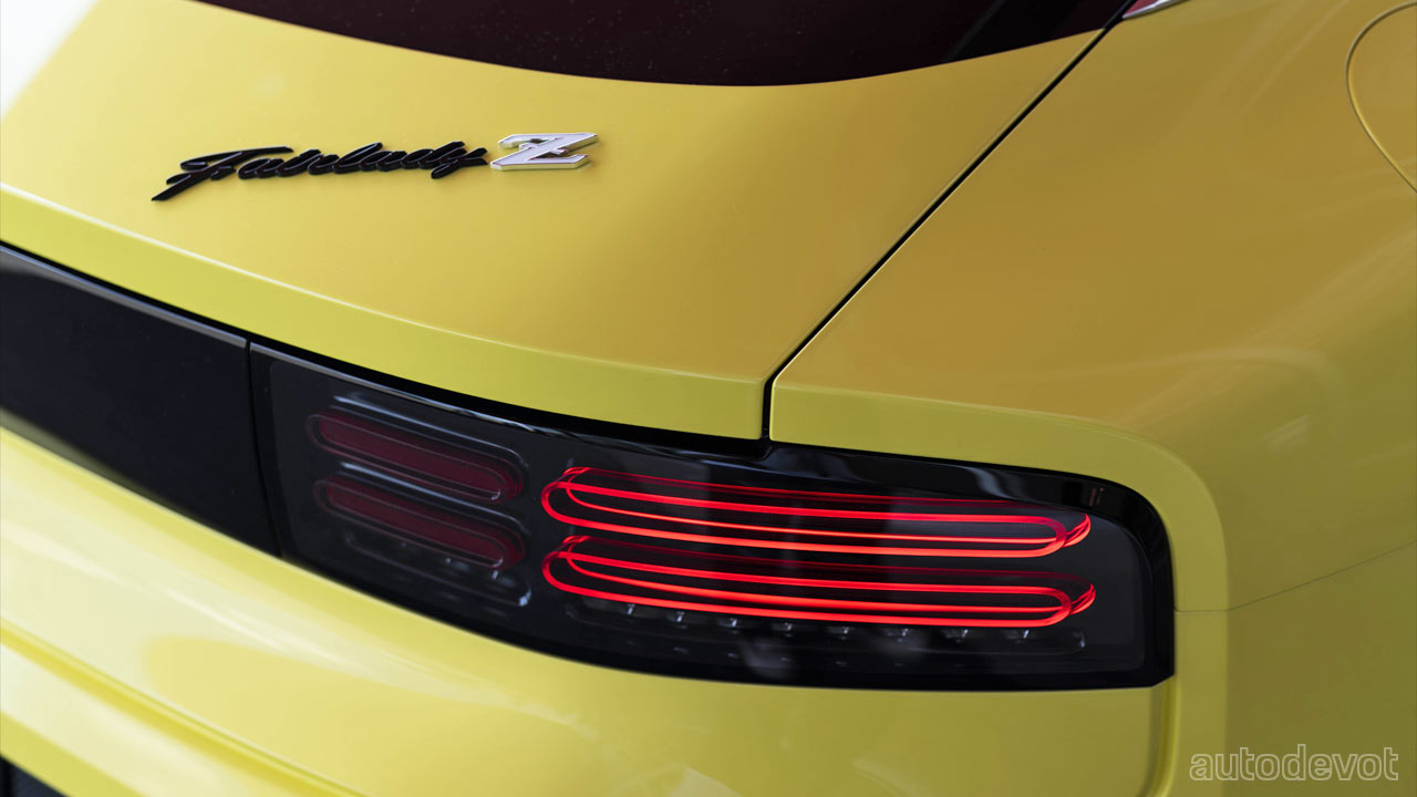 The black roof looks tasteful and adds the necessary contrast. Also, notice the Fairlady Z badge on its rump. 19-inch alloy wheels and circular tailpipes round off the looks.