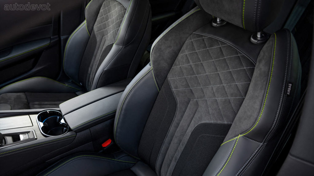 Perhaps, the most eye-catching styling element are those stunning, 20-inch wheels, shod with low-profile Michelin Pilot Sport 4S tyres. The calipers are also painted in Kryptonite. There’ll be 3 exterior colors to choose from: Selenium Grey, Nera Black and Pearl White.