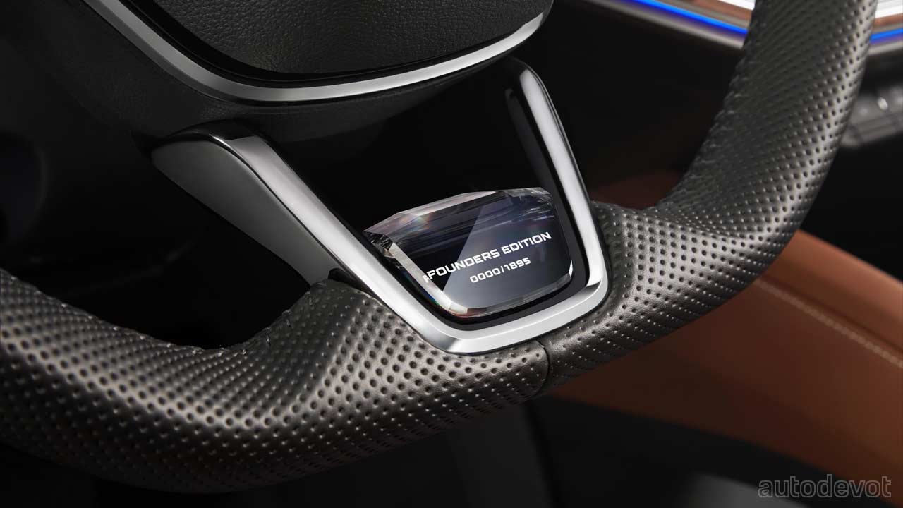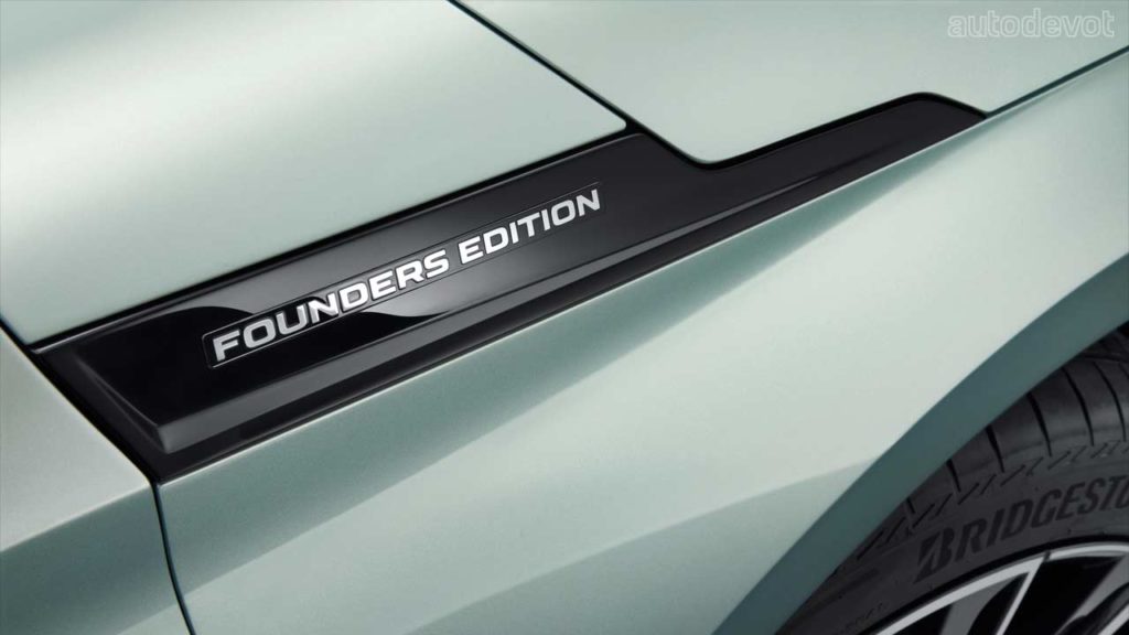 Things look fairly clean inside, literally, with the usage of sustainable materials such as 60% of the upholstery made of polyester from recycled PET bottles. The interior of the Founders Edition features upholstery in cognac-brown leather; the color of which is achieved by treating the hide with olive leaf extracts.