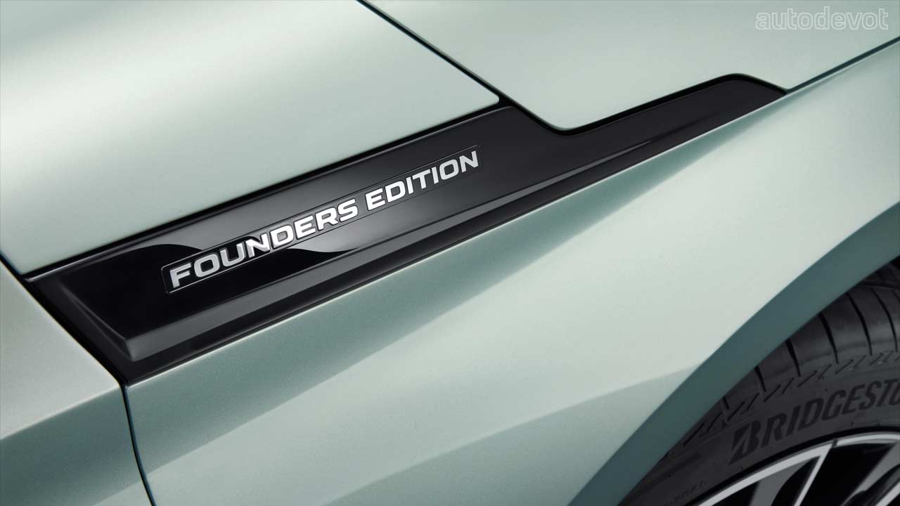 Distinguishing factors include the standard LED-illuminated Crystal Face grille (comprising 130 LEDs), gloss black elements, 21-inch Aquarius alloy wheels, and of course, a Founders Edition badge. The Founders Edition will be exclusive to the Enyaq iV 60 and iV 80 variants, which we’ll come back to in a bit.