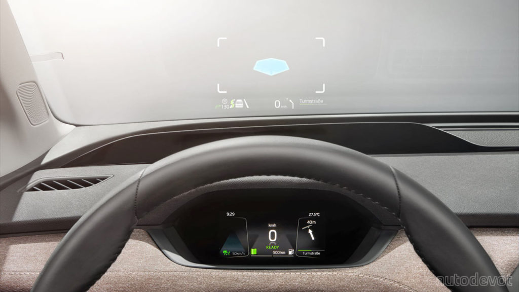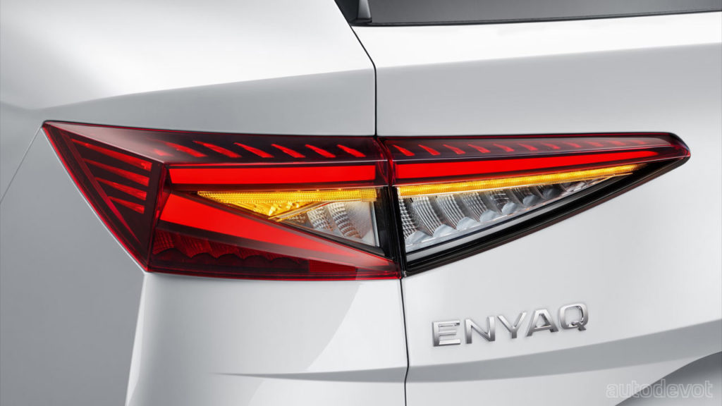 As for passive safety, the Enyaq iV gets a total of 9 airbags. While the crossover gets LED headlights and LED taillights as standard, buyers can opt for LED Matrix headlights and a more sophisticated LED taillights in a ‘C’ shape. Active safety and driver assistance features include the usual stuff such as Collision Avoidance Assist, Lane Assist, Traffic Jam Assist, Adaptive Cruise Control and so on. The owners can also park their Enyaq remotely via their smartphone.