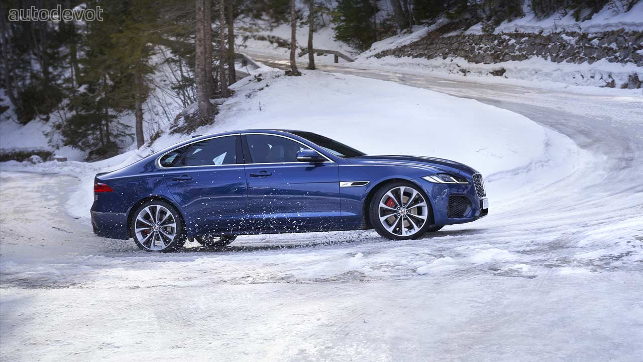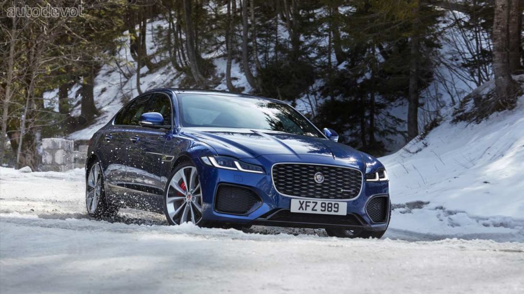 The 300 hp XF AWD Saloon is the quickest among the bunch, with a claimed 0-100 km/h (62 mph) sprint time of 6.1 seconds.