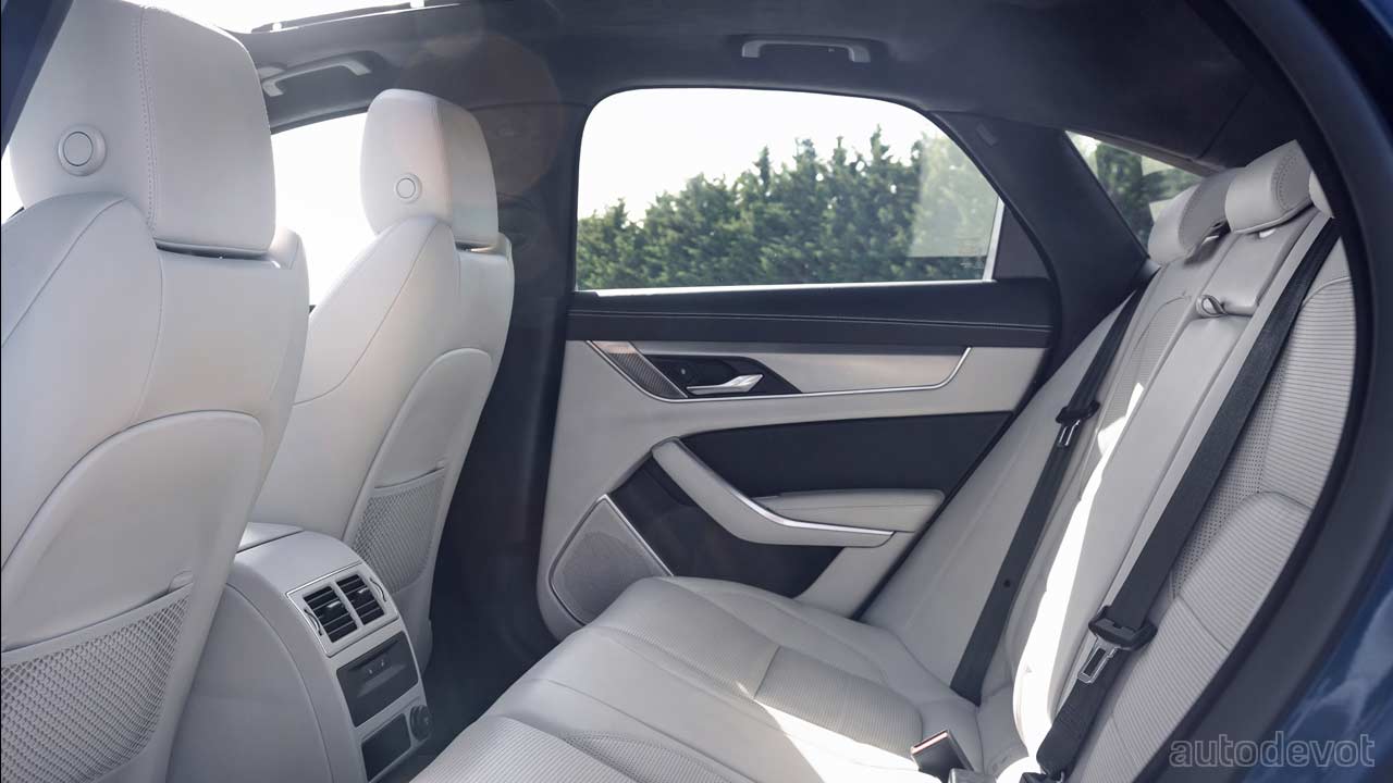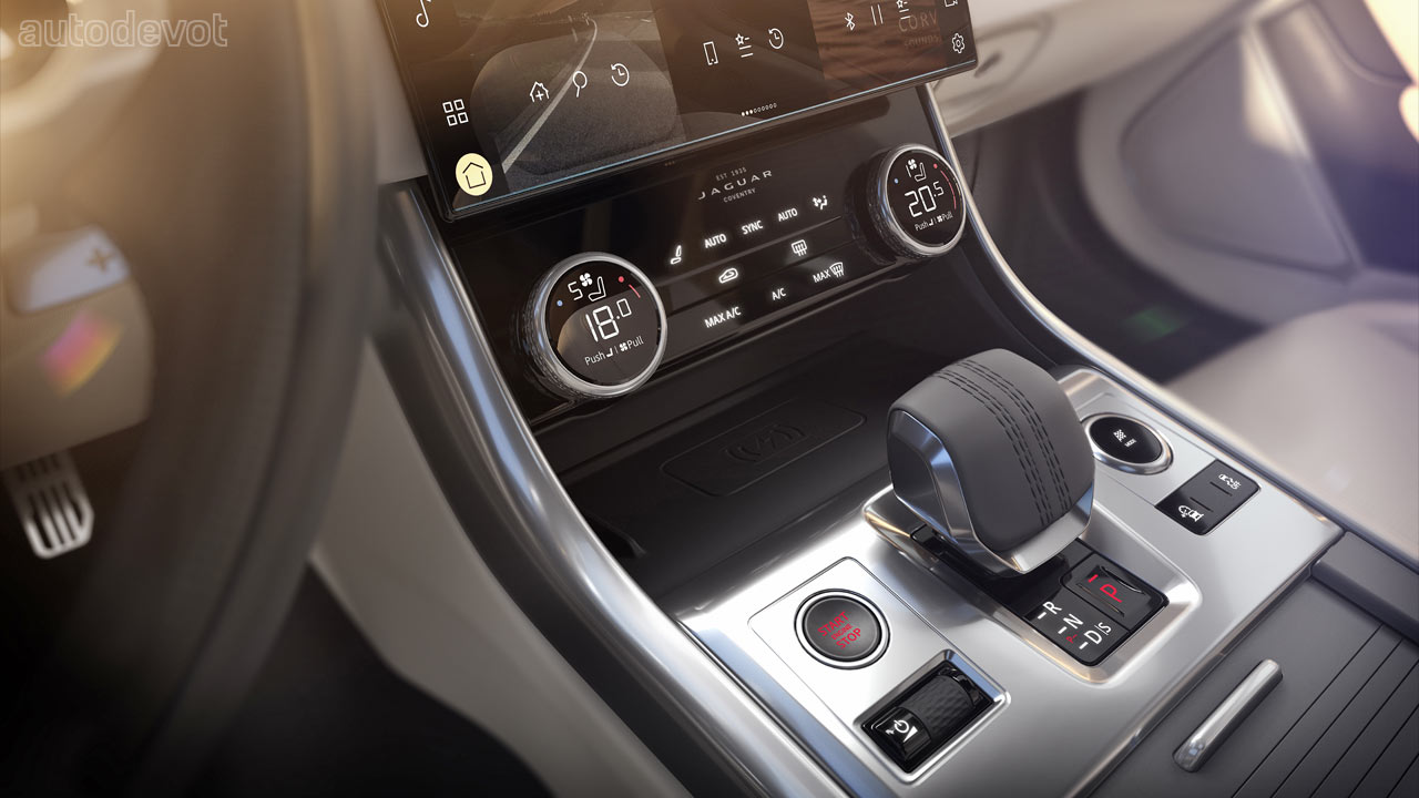 The fresh cabin features a 11.4-inch curved glass HD touchscreen, a 12.3-inch HD driver display, an updated Head-Up Display, Apple CarPlay & Android Auto connectivity, ClearSight Interior Rear View Mirror, 3D Surround Camera technology, and PM2.5 filtration. As with the updated XE, there’s a new Guardian Mode as well that sends smartphone alerts to the owner.