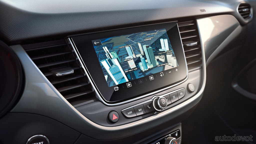 Although a front-wheel drive vehicle, the new Crossland offers ‘IntelliGrip’ traction control system with 5 modes: Normal, Snow, Mud, Sand, and ESP-Off. The last one deactivates ESP and traction control at speeds up to 50 km/h (31 mph). For safety reasons, the IntelliGrip automatically returns to ‘Normal’ mode when the speed crosses 50 km/h.