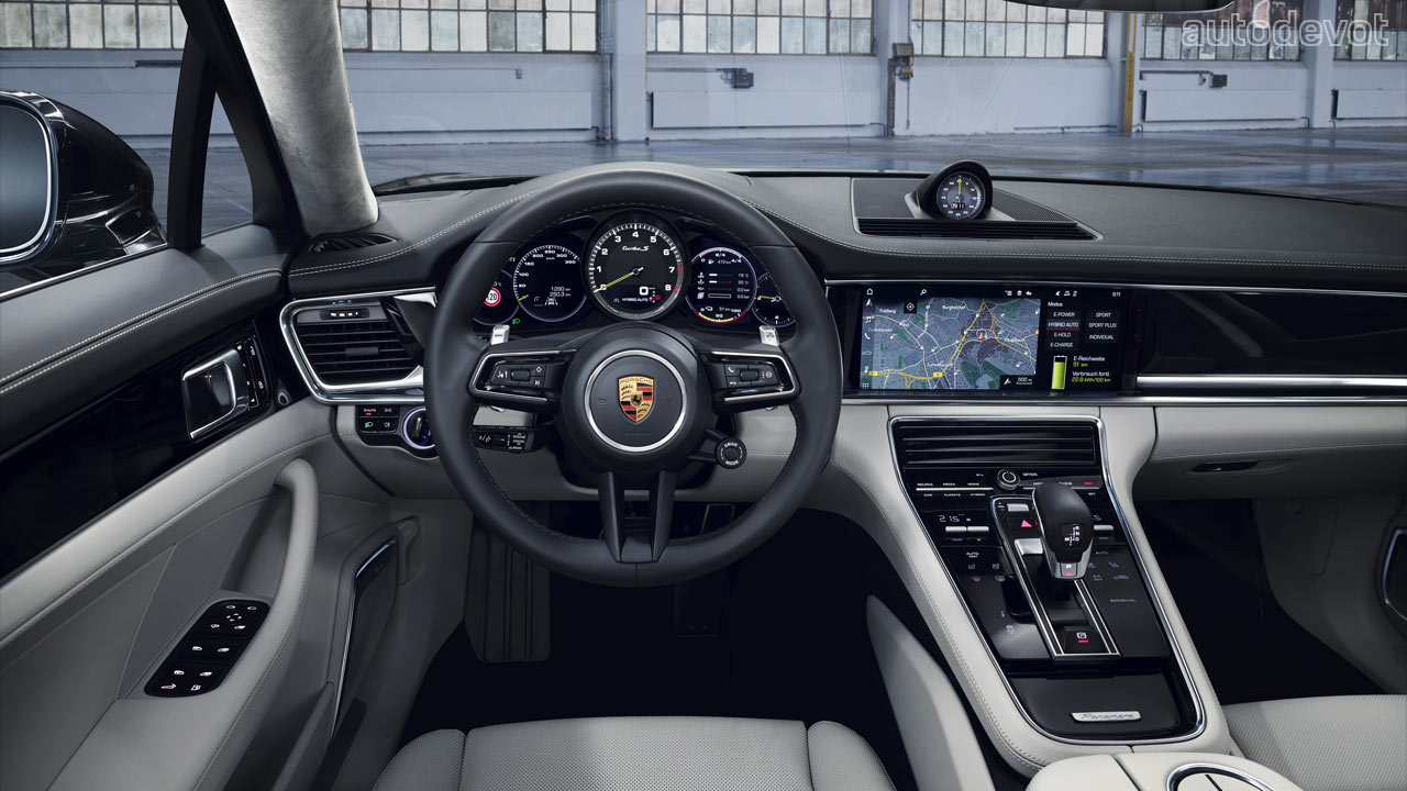 The new 4 E-Hybrid, available in both normal and Sport Turismo body styles, packs the same combination as the 4S E-Hybrid — a 2.9-litre (2,894 cc) V6 biturbo engine combined with an electric motor that is integrated with the 8-speed dual-clutch PDK gearbox. However, the combined output here is 462 metric hp (340 kW) between 5,000-6,250 rpm and 700 Nm (516 lb-ft) of torque between 1,000-4,300 rpm, which is a shortage of 98 hp and 50 Nm (37 lb-ft) compared to the 4S. Should be fine, as it is claimed to sprint from 0-100 km/h (62 mph) in 4.4 seconds (-0.2 s) and on to a top speed of 280 km/h (174 mph) — an increase of 2 km/h.